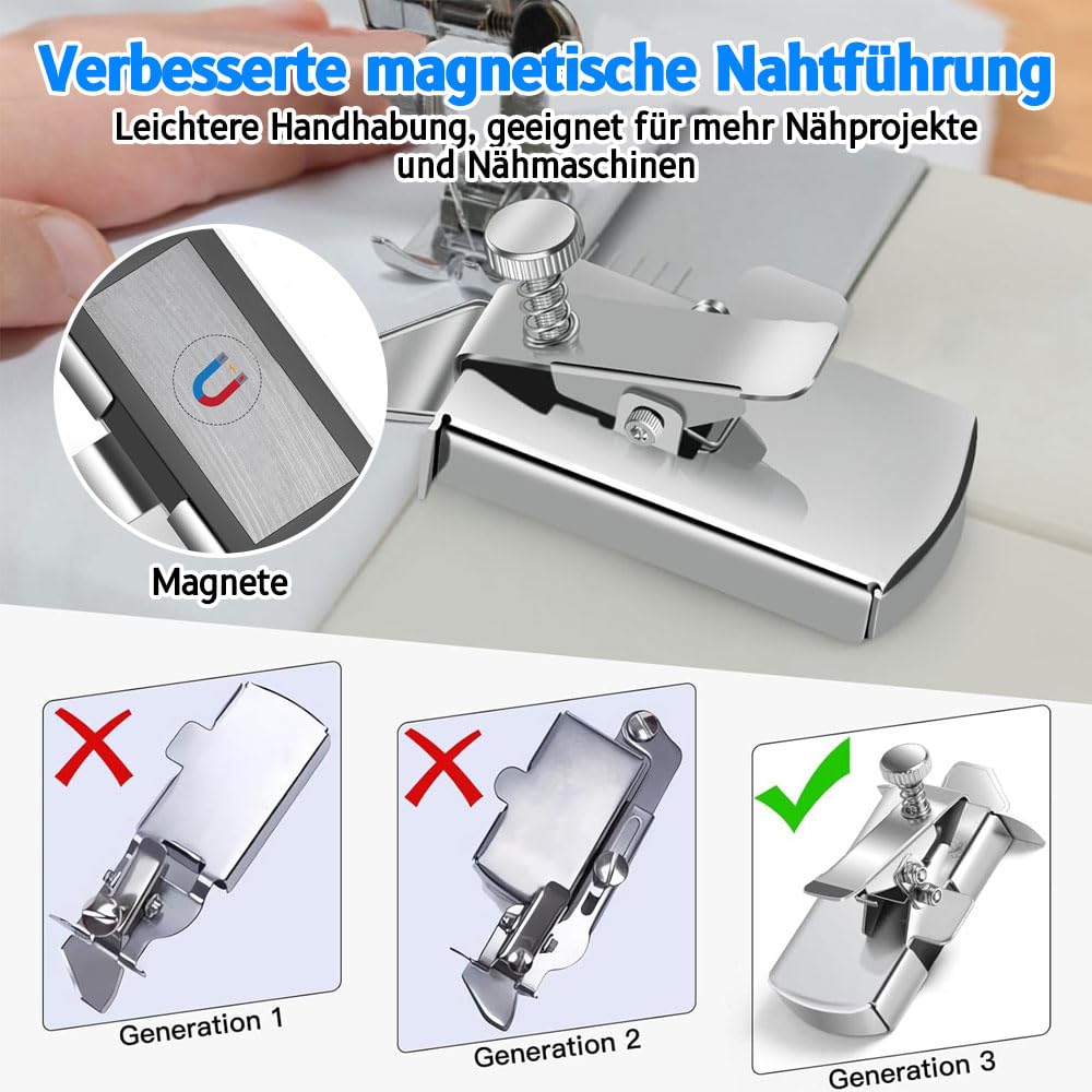 Guide de couture magnétique universel pour machines à coudre et surjeteuses – Accessoire de couture de précision avec forte tenue, s'adapte à la plupart des pieds presseurs. Guide De Couture Magnétique Guide,2 Stück Guide de couture Une bonne aide pour un débutant pour coudre la piste d'une ligne droite ou d'une ligne circulaire. Tant que le guide de bord magnétique est placé sur une... Guide De Couture Aimanté Guide De Couture Magnétique Universel Pour Machine à Coudre Et Guide Pour Machine à Coudre Fixation magnétique rapide - Installation facile, parfait pour les couturiers domestiques et les professionnels Cet outil magnétique, doté d'une grande stabilité, est parfait pour maintenir votre tissu en place et éviter les déplacements indésirables... Ensemble de guides de couture magnétiques – Augmentez l'efficacité de la couture avec des coutures précises et précises à chaque fois Acier inoxydable durable - Construction de qualité supérieure avec mesures gravées au laser pour une utilisation facile Forte force magnétique : maintient le tissu stable avec clip pour éviter de glisser, même sur des matériaux épais Guide de couture droit aimanté longueur 50 mm avec fort magnétisme.