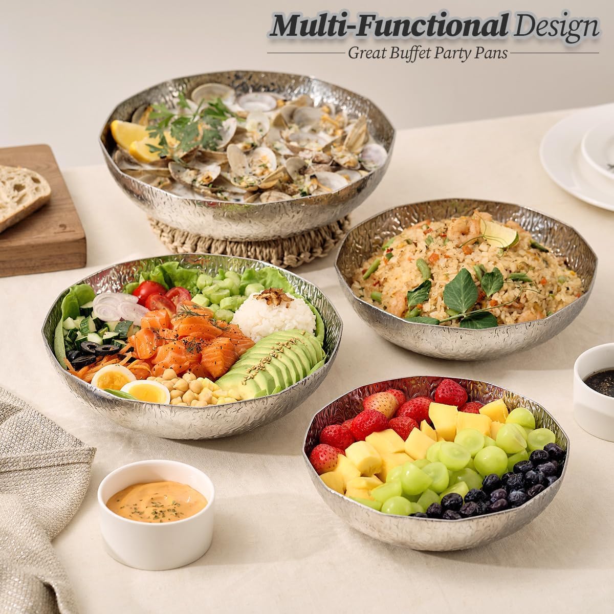 Idéale pour les sukiyaki et la cuisine japonaise : spécialement conçue pour le Sukiyaki, cette poêle peu profonde et large est parfaite pour cuire des viandes, des légumes, du tofu, etc. Cuisinez et servez directement à table pour une expérience culinaire authentique et immersive. Cette poêle polyvalente sert de bol de stockage de fruits peu profond, idéal pour présenter et organiser des produits frais. Sa fonctionnalité multifonctionnelle et son design sophistiqué en font un cadeau attentionné et unique qui sera chéri par tout amateur de cuisine. manque d'acer noxydable 9L réchaud Buffet chauffe-plats pour la Les poignées latérales ergonomiques offrent une prise en main confortable et sûre, ce qui le rend idéal pour cuisiner et servir dans le même récipient. Construit avec une structure à 3 couches de qualité supérieure et un noyau en aluminium, cette poêle assure une répartition homogène de la chaleur et une conductivité supérieure sur toutes les tables de cuisson, y compris les cuisinières à induction. Les poignées offrent une prise en main sûre pour une utilisation sûre, ce qui le rend pratique pour cuisiner et servir dans le même récipient sans avoir besoin de transférer vos plats. Découvrez la poêle multifonction ultime, parfaite pour la cuisson et le stockage. Un ajout élégant mais fonctionnel à n'importe quelle maison, il garantit que vos fruits sont rangés proprement tout en ajoutant une touche d'élégance à votre espace de cuisine. Élégante finition martelée avec une touche moderne : avec une finition martelée, cette poêle ajoute une touche contemporaine à n'importe quelle cuisine ou espace de rangement. Robot Pâtissier Professionnel 1500w Noir Robot De Cuisine Multifonction... Que ce soit pour les aventures culinaires en intérieur ou en extérieur, cette poêle polyvalente est un incontournable pour chaque cuisine. WAGENSTEIGER Bol De Service Multifonction En Acier Inoxydable manque d'acer noxydable 9L réchaud Buffet chauffe-plats pour la... Design multifonction : fabriqué en acier inoxydable et aluminium pour une excellente durabilité, idéal pour une utilisation comme plateau de service pour contenir des plats chauds et froids. Poignées ergonomiques pour une manipulation facile : conçue avec des poignées latérales confortables, cette poêle est facile à manœuvrer même lorsqu'elle est pleine. Améliorez votre expérience culinaire avec cet accessoire de cuisine robuste et élégant. Conçu pour la durabilité et la rétention de la chaleur, il est parfait pour une cuisson lente, mijoter et garder les plats au chaud. Construction robuste à 3 couches avec noyau en aluminium : construite avec une structure robuste à 3 couches, y compris un noyau en aluminium pur, cette poêle assure une conductivité thermique supérieure et une répartition uniforme sur toute la surface, ce qui la rend idéale pour la cuisson à induction et toutes les plaques de cuisson.