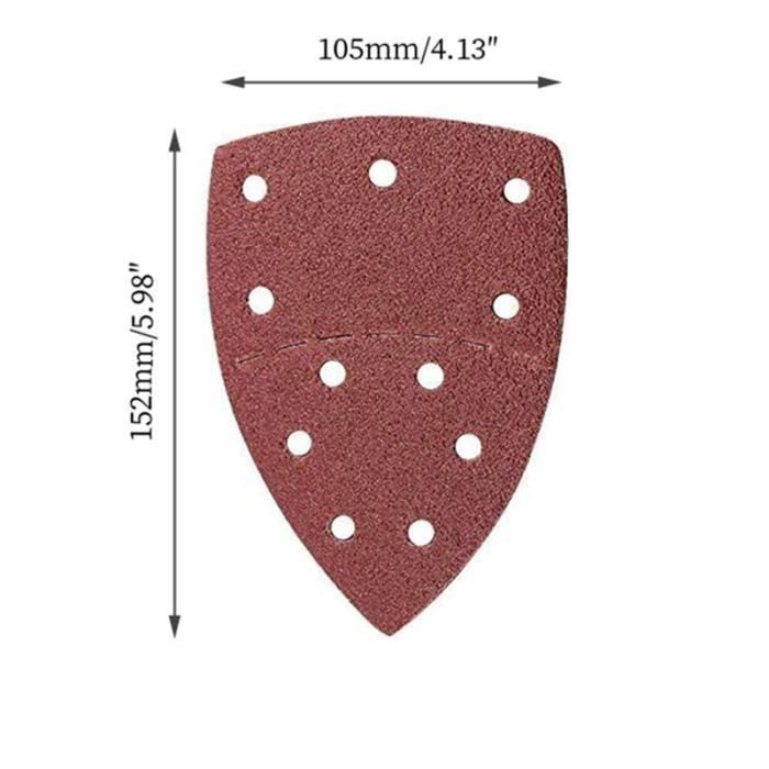 Contenu de l'emballage : chaque paquet contient 40 feuilles de papier abrasif triangulaire de calibre 80., Matériau et marquage de grain : le papier abrasif triangulaire à 6 trous se fixe avec un abrasif en oxyde d'aluminium mesure environ 90 x 90 mm, avec une marque de grain sur le dos, il est facile à utiliser selon vos besoins réels. De taille standard, de haute qualité, les papiers abrasifs à surface uniforme et fine ont un bon effet de polissage, ils sont robustes et antistatiques ; les 6 trous pré-perforés sont pour l'extraction de la poussière Le crochet et la boucle à l'arrière sont faciles et rapides à coller sur les ponceuses triangulaires. Veuillez permettre une légère différence de dimension en raison de la mesure manuelle. Papier Abrasif Pour Ponceuse Serious Grit Lot De 25 Feuilles Abrasives Triangulaires Delta Grain 40 100 Mm X 150 Mm Papier Ponceuse Triangulaire Feuilles abrasives 40 au meilleur prix | Leroy Merlin Spécifications : abrasif : oxyde d'aluminium. Couleur : brun rougeâtre., Taille : 90 x 90 mm., Taille du grain : 80., Remarque : veuillez utiliser dans un environnement sec.