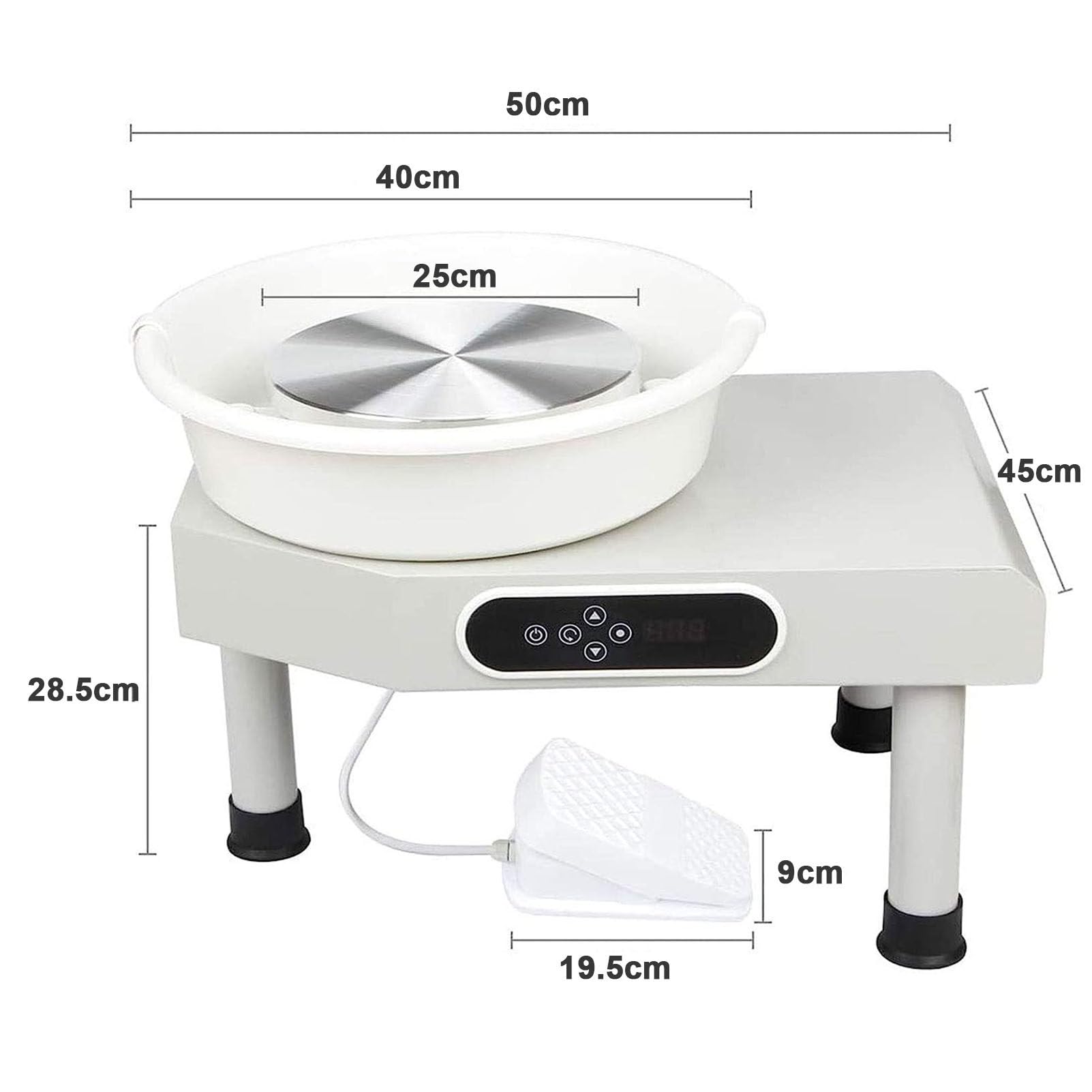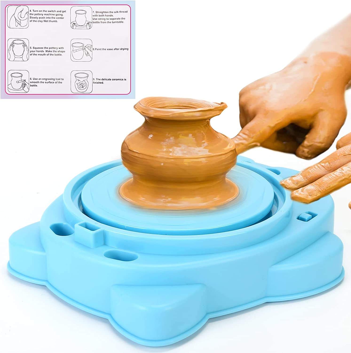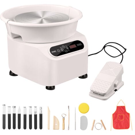 Design de haute qualité : doté de deux platines en métal durables (10 cm et 6,5 cm), cette roue de poterie compacte assure une vitesse stable et une résistance à la rouille. Équipé de paramètres de vitesse réglables, d'un interrupteur de direction et d'un système de protection contre les fuites intégré pour un fonctionnement sûr. 👉 Moteur puissant et faible bruit... Son design arrondi adhère aux principes ergonomiques, assurant un confort lors d'une utilisation prolongée. Contenu : notre kit de roue de poterie pour enfants et adultes comprend tous les matériaux nécessaires pour la fabrication de poterie : 1 kg d'argile séchée à l'air, 8 outils de façonnage, 8 outils de sculpture, 6 peintures, une palette, des pinceaux. Mini roue de poterie TBEST - Couleurs vives et performance stable pour Machine électrique à Roue De Poterie, 350 W, Pour Former De La Céramique, De La Sculpture, De L'argile, Avec Plateau, Kit D'outils, Platines Pour Enfants, Adultes, Débutants, Bricolage, Travail En C Ce tour de poterie pour enfants est compact et léger, et peut être affiché sur une étagère comme une œuvre d'art après la création. Le moteur enfichable DC 12 V est sûr, fiable et résistant à la rouille induite par l'eau Que ce soit pour des séances de liens familiaux, des cours éducatifs ou des activités artistiques personnelles, c'est le choix parfait. Kit d'argile léger : cette roue de poterie est conçue par des concepteurs professionnels de roue de poterie, elle optimise l'espace de fonctionnement, rendant les projets plus faciles à réaliser. Et deux tabliers : un pour les adultes et un autre pour les enfants, encourageant les sessions d'art collaboratives. Machine d'argile pour roue de poterie électrique pour adultes débutants... Le moteur enfichable DC 12 V est sûr, fiable et résistant à la rouille induite par l'eau.