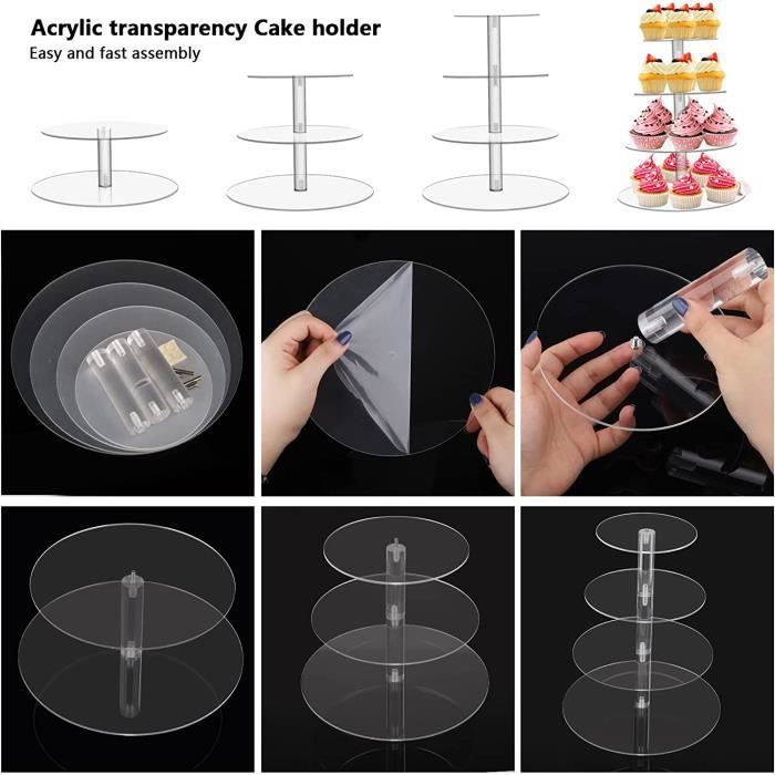 Présentoir à gâteau de mariage stable en acrylique avec 4 plateaux entièrement démontables, fabriqué en Allemagne. Acrylique transparent en aluminium pour une meilleure stabilité - Diamètre des plaques à gâteau : voir choix - Hauteur totale : environ 49 cm - Hauteur entre les tablettes : 15 cm - Produit neuf - Avec éventuelles traces de fabrication - Finitions de qualité - Très longue durée de vie - Attirera tous les regards lors de votre fête / mariage - Design très élégant et individuel - Qualité supérieure. Hauteur totale : environ 49 cm - Hauteur entre les étagères : 15 cm Un présentoir rond sur 4 étages, pour cupcakes ou gâteaux idéal pour les cocktails et sweet table. Mesurant 32cm de hauteur et avec une base de 30cm, vous pourrez facilement présenter vos pâtisseries et mignardises grâce à ce présentoir ! Fabriqué en acrylique, ce présentoir est non seulement simple à assembler, mais également très robuste pour une utilisation durable Résumé Support à gâteau en acrylique : avec la guirlande lumineuse LED, vous pouvez rendre le râteau à gâteau plus beau la nuit, support à gâteau en acrylique à 4 couches Support à gâteaux rond en acrylique : il peut être utilisé comme décoration pour une barre chocolatée, également comme support à gâteaux, support à cupcakes, présentoir à bonbons, empilage de beignets et... Présentoir à Gâteaux Rond En Acrylique Avec Motif Laser - 4 Aluminum Stand de gâteau, presentoir gateau mariage 3 étages 5