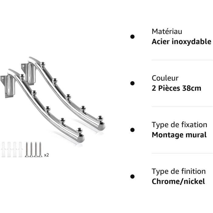 Dr. L cintr st composé d pannau d mubl contrcollé sur ls dux facs, d 18 mm d'épaissur. Ls bords sont soignusmnt rcouvrts d chant ABS. 5 poignés n métal noir Robuste et durable : le cintre peut être accroché librement, la structure du matériau est ferme, vous n'avez pas à vous soucier que le cintre tombe, il est durable et efficace, qu'il s'agisse d'un manteau ou d'un jean, que ce soit une doudoune en hiver ou une manche courte en été, il peut être facilement accroché au cintre Porte Cintre Murale BASHLWUA Étendoir Mural, Cintre Mural Support De Séchage, Rotation 90 Porte Vêtements Pliable Mural, Pour Balcon Cdiscount Cintres Murales Installation facile : la méthode d'installation est très simple, vous pouvez choisir une installation autocollante ou perforée, les deux méthodes d'installation sont faciles à comprendre, et après une installation réussie, elle est robuste et durable, vous n'avez qu'à l'utiliser en toute confiance Résistant à la corrosion et à la chaleur, antirouille, peut être installé à l'intérieur et à l'extérieur, que ce soit au vent, au soleil ou à la pluie.Égouttoir... Support de cintre rétractable pliable mural en aluminium, supports de séchage de vêtements Robuste et antirouille : les cintres muraux pivotants en acier inoxydable peuvent accrocher jusqu'à 10 cintres à la fois, vous pouvez les utiliser pour placer les vêtements que vous devez porter dans un avenir proche, et ils sont pratiques pour votre collocation quotidienne, les cintres sont fabriqués en acier inoxydable de haute qualité, ce qui peut prévenir efficacement la corrosion et la rouille Lorsque vous l'utilisez, tournez le cintre vers le bas à 90 degrés pour accrocher les vêtements, lorsque vous ne vous en servez pas, tournez le cintre vers le haut ou il peut être tourné à 180 degrés à gauche et à droite pour être fixé au mur, ce qui ne prend pas de place et peut maximiser l'espace de rangement