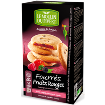 Description du produit Biscuits fourrés aux fruits rouges et éclats de cassis, sans huile de palme. Elles ne sont pas forcément exhaustives et ne sauraient se substituer aux informations figurant sur l'emballage du produit qui font seules foi, et auxquelles vous êtes invités à vous reporter, notamment en cas d'intolérance alimentaire. FOURRES CARAMEL BEURRE SALE 175G | MOULIN DU PIVERT | Acheter sur E Les fourrés fruits rouges Le Moulin du Pivert sont fabriqués en France, avec des ingrédients certifiés bio. Chaque paquet contient 10 biscuits rangés par 2 dans des sachets, pour vous accompagner toute la journée. Ils sont vegan, exempts d'œufs, de lait ou de beurre Clause de non-garantie Photographie non contractuelle. Biscuits Bio Le Moulin Du Pivert Biscuits Fourrés à La Fraise Twibio Bio 150g Moulin Rouge Biscuits Fourrés Fruits Rouges 175G Bio Pour votre santé, évitez de manger trop gras, trop sucré, trop salé. Valeurs nutritionnelles pour 100g : Energie : 1754 kJ / 417 kcal Matières grasses : 13gDont acides gras saturés : 1,4g Glucides : 70,1gDont sucres : 40g Fibres : 2,4g Protéines : 3,5g Sel : 0,2g Allergènes : Noisettes, Noisettes, Noisettes Mode d'emploi A conserver à l'abri de l'humidité. Moulin Du Pivert Ingrédients Purée de pomme*, farine de blé T65*, sirop de blé*, sucre de canne non raffiné*, huile de tournesol*, beurre de cacao* , purée de fraise* 3., 9%, purée de framboise* 3., 9%, noisettes*, jus de citron concentré*, arôme naturel de fraise et framboise* 0., 4%, cassis* 0., 3%, poudre à lever : bicarbonate de sodium, poudre de vanille*. Le secret de ces biscuits moelleux fourrés aux fruits rouges, c'est le mélange savoureux d'une farine de blé moulue à la meunerie familiale de Montricoux (Tarn...