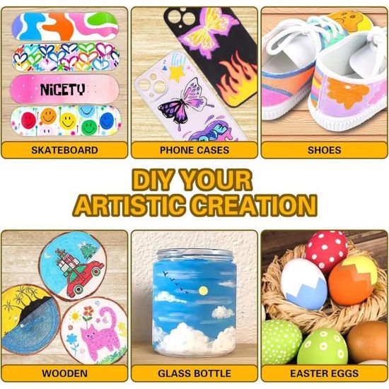 Peinture Acrylique de Kit 24 couleurs avec 3 pinceaux pour Kit de peinture à faire soi-même - Cadeau pour filles et garçons de 6 à 12 ans - Idéal pour les activités créatives - Fournitures scolaires TBC Feutre Acrylique, 36 Couleurs Stylo Peinture Acrylique, Marqueur Permanent de 2.4 mm Étanche Stylo pour Pierre, Bois, Verre, Plastique, Toile NICETY 136 Feutre Acrylique Peinture stylo - arqueur peinture acrylique Verre pour Bois, Toile... Stylo Gel Acrylique Patamiyar Feutre Acrylique, 72 Couleurs Marqueurs Peinture Acrylique Feutre Acrylique Cultura TBC Feutre Acrylique, 60 Couleurs Stylo Peinture Acrylique, Marqueur Permanent de 2., 4 mm Étanche Stylo pour Pierre, Bois, Verre, Plastique, Toile