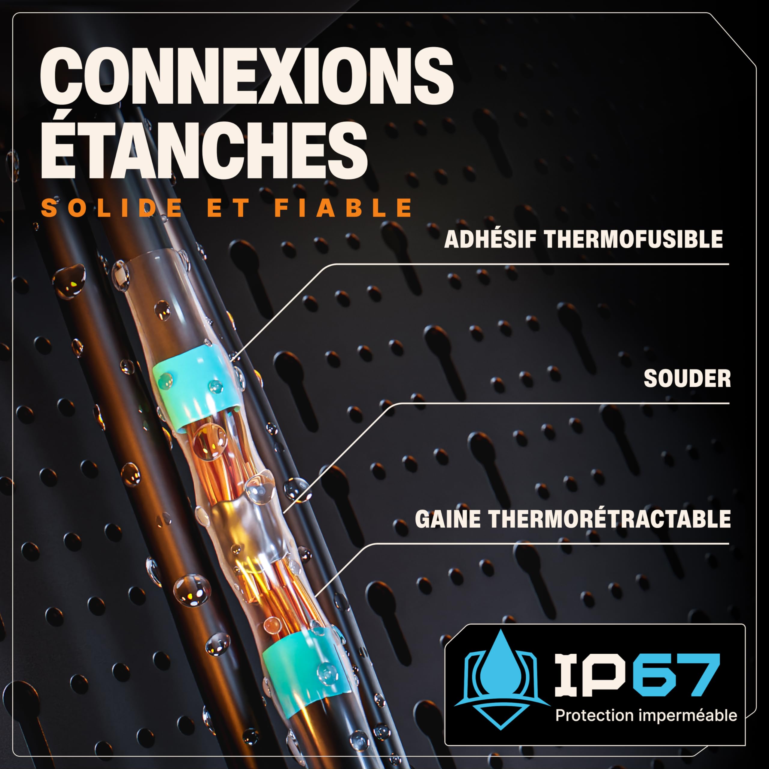 Effectuer des tests et des inspections rigoureux Dénudez les extrémités des câbles et faites glisser le connecteur à souder sur l'un des câbles. Servante D'atelier Complète Avec Outils Set De Connecteur à Souder [200 Pièces] Connecteurs Electrique IP67 Wago 3 Entrées Rassemblez les extrémités des deux fils dénudés et alignez le connecteur à souder au centre du point de connexion. Cela fait durcir la soudure et la colle et crée une connexion de câble solide et fiable. BAURIX® Kit de gaine thermorétractable 180 pièces - Rapport de rétraction 3:1 - Assortiment de tube thermorétractable étanche avec couche intérieure de colle chaude - IP67 - longueur tube 88 mm Une fois la soudure fondue, retirez le pistolet thermique et laissez la connexion refroidir complètement. Connecteurs pour panneaux solaires Macho et Ip67 Mc4 femelle 4mm CONNEXIONS SÛRES - Avec les connecteurs électriques professionnels de BAURIX étanches à la soudure avec manchon thermorétractable, vous obtenez des connexions sûres et fiables sans sertissage. MATÉRIAU FLEXIBLE - Les connecteurs electriques finies peuvent être utilisés de manière flexible et peuvent être pliés pendant l'utilisation. Que vous travailliez sur un grand projet de construction ou que vous travailliez sur votre projet de rénovation domiciliaire, avec BAURIX, vous avez toujours les bons outils à portée de main. Set de connecteur à souder [120 pièces] - Connecteurs electrique IP67... CONNECTEUR ÉLECTRIQUE ÉTANCHE robuste IP67 pour système de panneaux solaires - EUR 6,74.À VENDRE! 404842496634 Nous veillons à ce que vous soyez informé de la bonne utilisation de nos outils. Nous sommes fiers que nos produits aient contribué à accroître la sécurité dans plus de 250 000 projets.