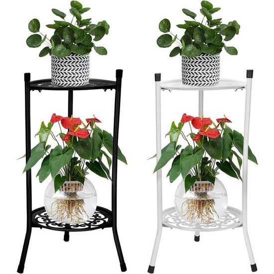 Étagère d'angle à 2 niveaux : cette étagère pour plantes dispose de 3 niveaux pour mettre en valeur vos belles fleurs, votre collection de plantes grasses, vos décorations de cour, vos outils de jardin, etc. Comme plate-forme de présentation de village de Noël ou présentoir. Le support de plantes à 3 niveaux offre un grand espace de rangement, permettant d'exposer environ 9 pots de fleurs de tailles différentes. Intérieur et extérieur : l'étagère pour plantes peut être utilisée à l'intérieur et à l'extérieur. Vous pouvez le placer dans l'entrée, le salon, la salle de bain, la cuisine, le jardin, la terrasse, le magasin de fleurs et le café Étagère d'angle à 2 niveaux : cette étagère pour plantes dispose de 3 niveaux pour mettre en valeur vos belles fleurs, votre collection de plantes grasses... Support De Fleurs En Métal Pour Intérieur Et Extérieur à 2 Niveaux Le design à 90° permet d'économiser de l'espace et est idéal pour le placer dans un coin. UNHO Étagère à Fleurs en Fer Forgé 50x25x87cm Porte Plante Echelle avec 4 Tablettes Escalier Décoration pour Jardin Balcon Terrasse Assemblage facile : cette plante mesure 60 cm (L) x 60 cm (l) x 60 cm (H). Construction en métal robuste et durable : métal durable avec une finition antirouille, cette étagère pour pot de fleurs ne rouille pas et fonctionne bien à l'extérieur. Vis et outils inclus.