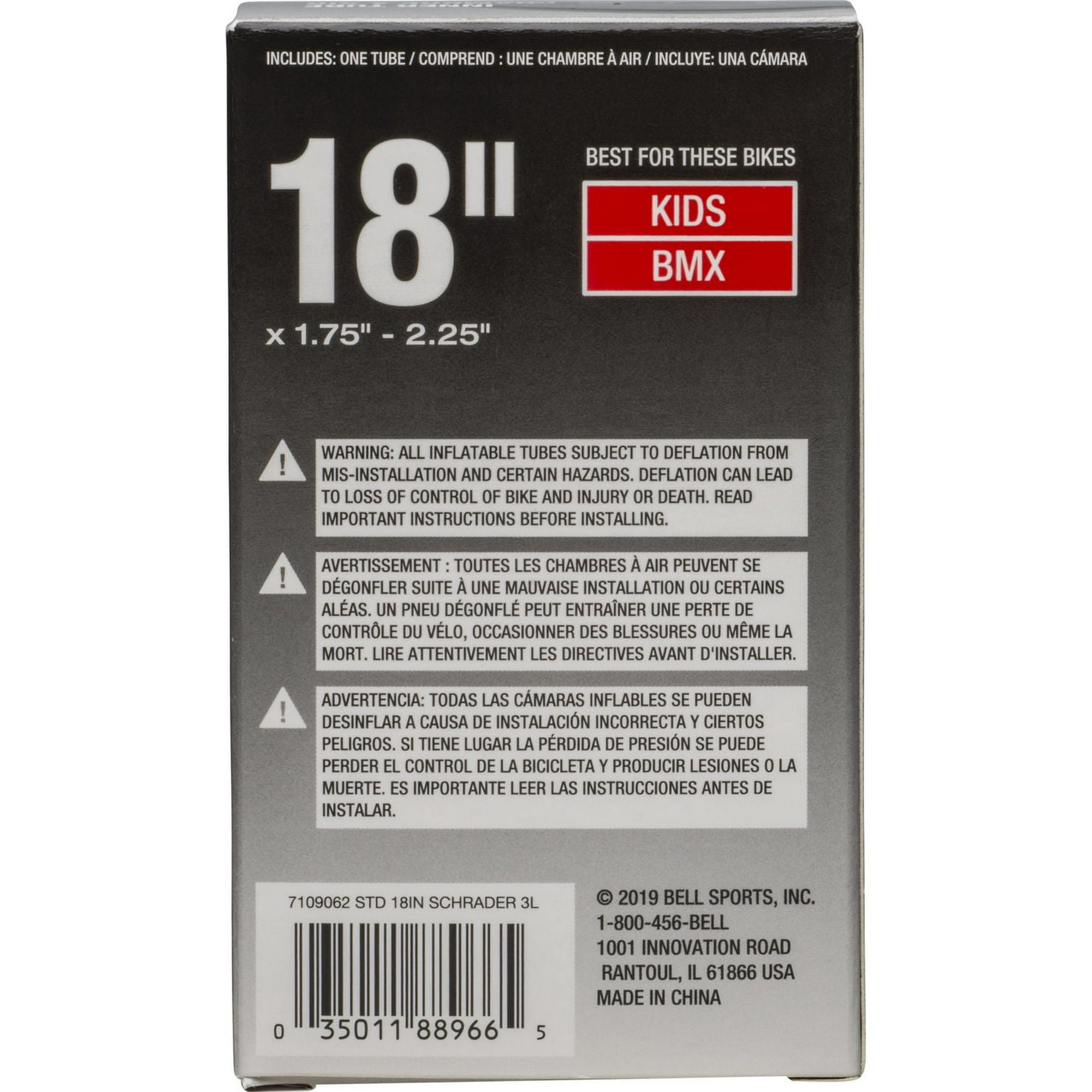 Norme vélo chambre à air, valve Presta, tube intérieur de haute qualité, moule en caoutchouc vulcanisé pour une paroi latérale constante empêche Blow outs, fits 66 x 4,8 cm pneus à haute pression., 7015264 Chambre à air 12 pouces pour roue vélo Chambre ? air pour v?lo 27 Chambre ? air universelle pr?te ? rouler Gamme compl?te de toutes les principales tailles de chambres ? air Caoutchouc moul? pour une paroi lat?rale uniforme Emp?che les ?clatements ? haute pression Plage d'ajustement de largeur 1,1/8 - 1 1/4 Taille de roue 27 Chambre à Air 700 Bell Inner Tube Chambre A Air Camara 27.5 Chambre A Air 700x38c Chambre à air standard de Bell Sports Chambre à air Schrader 18 po ; Dimension de pneu de vélo 18, 18 ; Nom de la marque Bell Sports, Bell Sports ; Type de vélos...