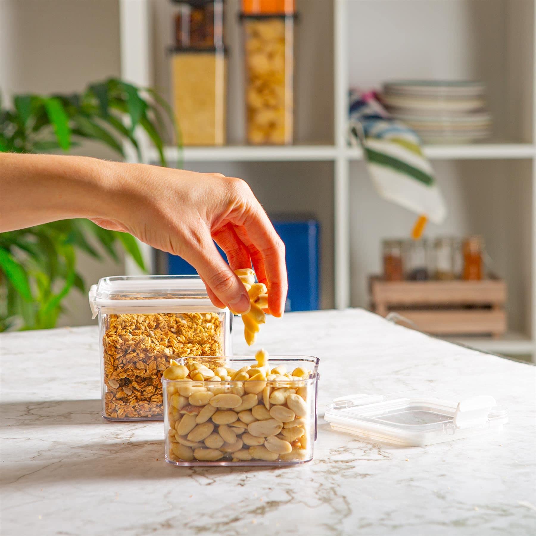 Pour une solution de stockage de nourriture fonctionnelle, pourquoi ne pas essayer cette gamme de conteneurs alimentaires de style minimaliste de style minimaliste par Argon Vaisselle. 5pc Blanc Récipient de Conservation des Aliments à Dessus Rabattable RUR Conteneurs à chaussures 6 pièces/ensemble côté ouvert transparent... Hermétique et étanche – Le joint noir garantit que vos récipients restent hermétiques, préservant la fraîcheur de vos aliments tout en évitant les fuites accidentelles. Choisissez parmi notre gamme de quatre tailles différentes pour tous vos besoins de stockage de nourriture. Choisissez parmi la collection complète avec une gamme de tailles et deux couleurs contrastantes pour votre décor de la cuisine! Produit à partir de plastique de polyéthylène perdurable et sans BPA, ces conteneurs de stockage sont parfaits si vous avez des petites fonctionnalités sous vos pieds, car elles ne se briseront pas en morceaux comme ceux-ci sont connus pour faire! Idéal également pour stocker des liquides comme des soupes, des grains de café, etc. Utilisez le stockage de placards et gardez vos céréales, vos grains et vos impulsions soignées et organisées! Design moderne et minimaliste – Cet ensemble de récipients alimentaires élégant et tendance d'Argon Tableware est disponible en plusieurs tailles et deux couleurs contrastées, conçu pour compléter le décor de votre cuisine tout en gardant tout organisé et frais. Avec quatre tailles disponibles, il est idéal pour organiser les céréales, les légumineuses et les liquides de manière fonctionnelle et tendance. Joint... CONTENEURS DE STOCKAGE De Rouleaux De Peinture, 2 Pièces, Sacs De Dimensions : 460 ml : 10 cm l x 10 cm P x 6,5 cm H, 700 ml : 10 cm l x 10 cm P x 10 cm H.
