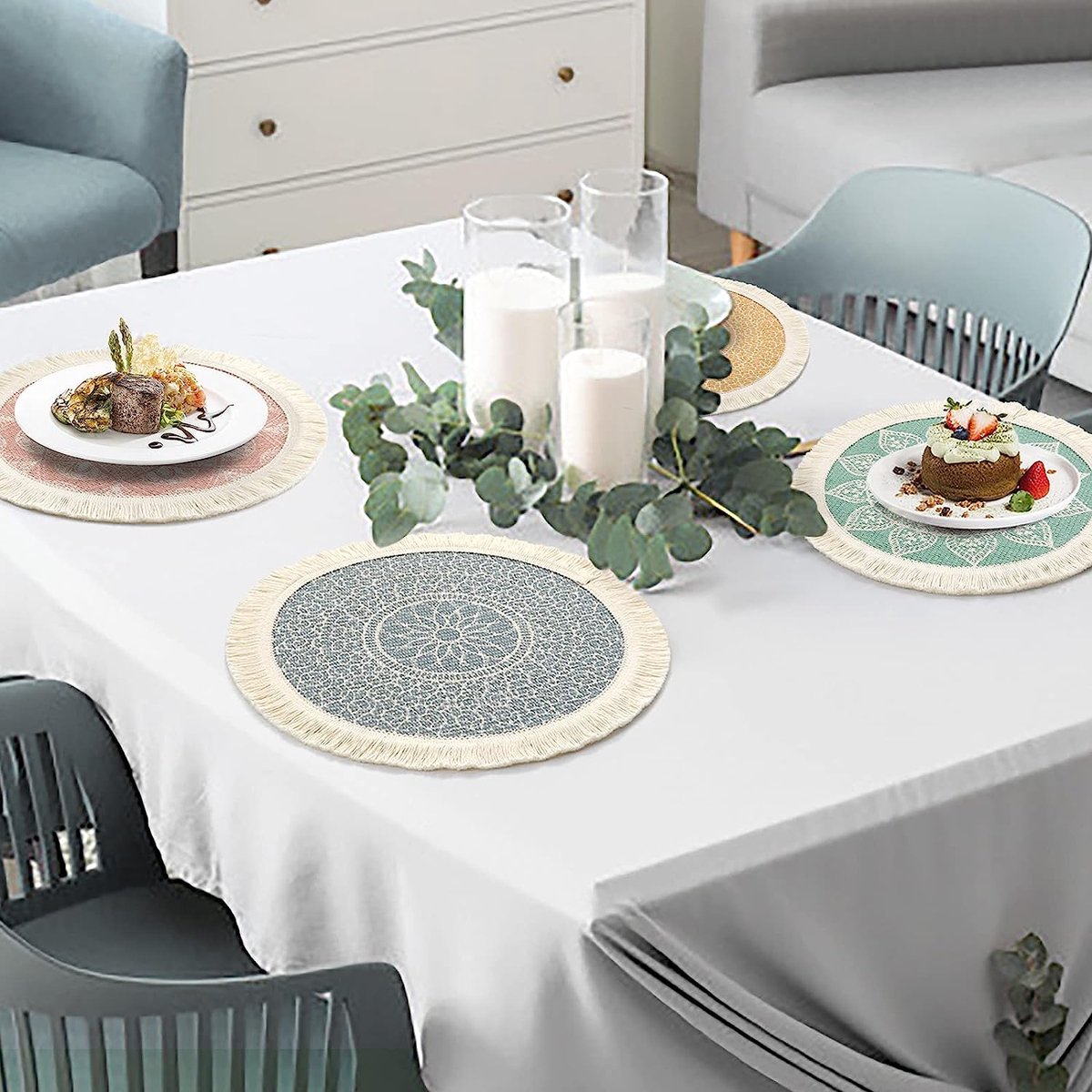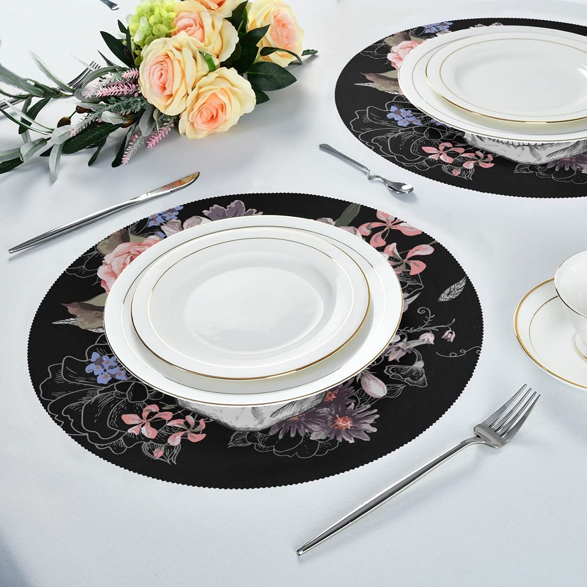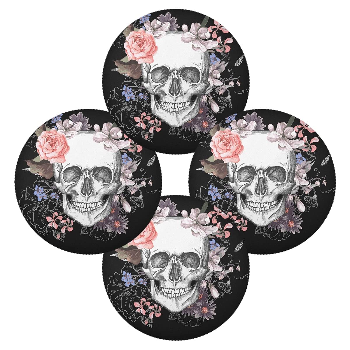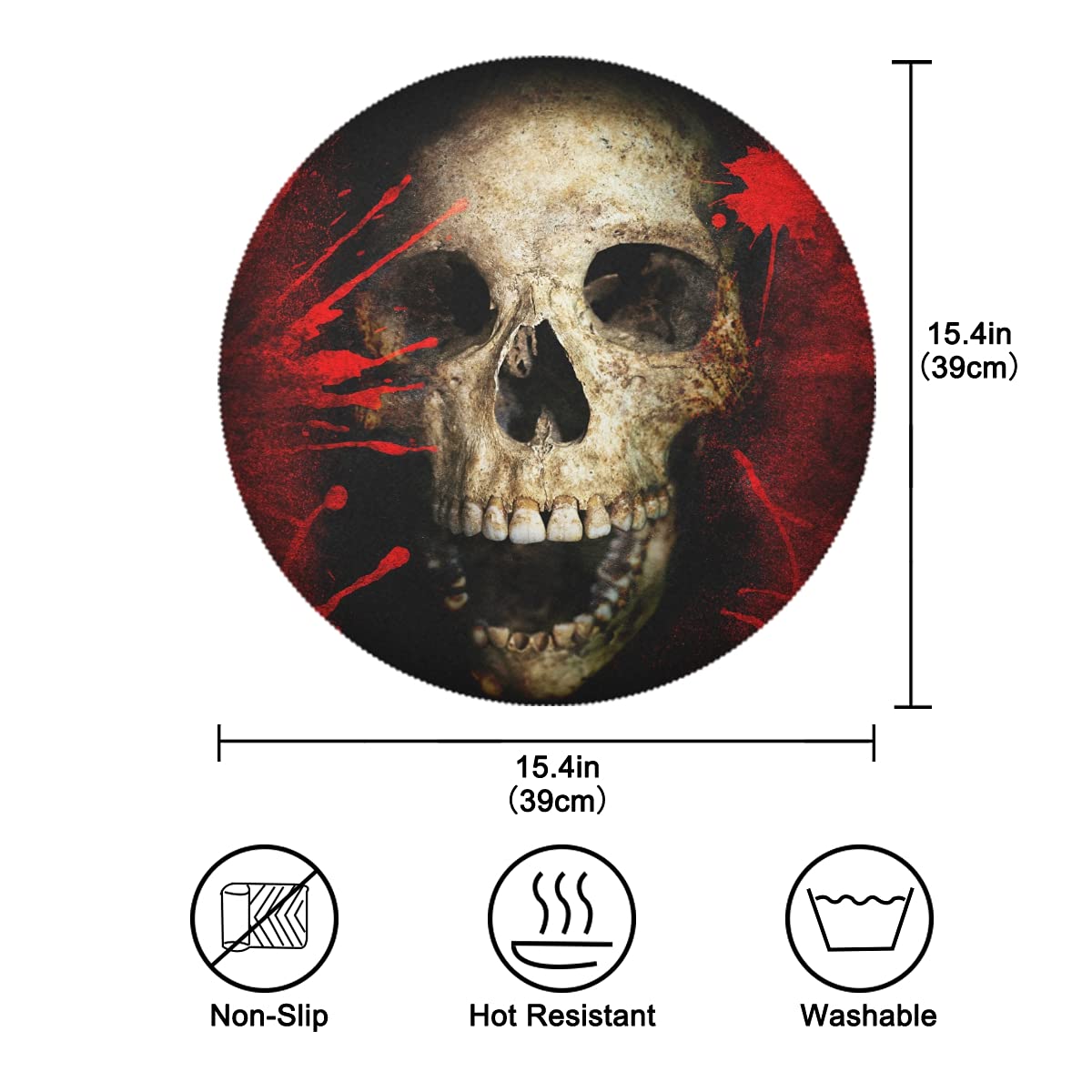 MeetuTrip Sets de table ronds résistants à la chaleur pour table de salle à manger, antidérapants, durables, lavables et réutilisables Matériau : polyester de haute qualité, lot de 6 sets de table., Taille : 39 cm. Sets de table parfaits pour un usage quotidien en famille, les vacances, les fêtes en plein air, les mariages, la cuisine intérieure, la salle à manger, les réunions de famille, les hôtels, les restaurants, les cafés, les décorations de table de bureau ; un cadeau pratique pour Halloween, Thanksgiving, Noël, pendaison de crémaillère 4 - 6 -8 ou 12 sets de table tête de mort fait main vampire Des sets de table aux nappes, en passant par les assiettes et les verres, vous pourrez créer une ambiance unique et personnalisée pour vos repas. Exprimez votre originalité et votre créativité avec notre collection de produits pour la table tête de mort Taille : lot de 6 sets de table de 39 cm de diamètre Tête De Mort Décoration Lot De 6 Sets De Table Gothiques Avec Motif Tête De Mort, Noir Et Gothique Decoration Caractéristiques : Sets de table faciles à nettoyer, résistants à la chaleur, ne se décolorent pas et sèchent très rapidement, durables et réutilisables. Idéale pour un usage quotidien, s'harmonise parfaitement avec une table en bois foncé, une table de salle à manger brune, une table en verre, une table de salle à manger blanche, une table de ferme en bois Design : Sets de table de bonne qualité pour la table de salle à manger ronde avec un design exquis pour ajouter plus de plaisir à votre table de cuisine. Dimensions : diamètre de chaque set de table rond : 39 cm · Matériau : lot de sets de table en polyester, résistants à l'usure et aux plis, résistants à la...