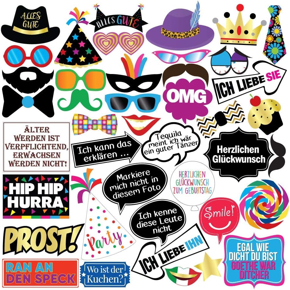 Lustige Geburstagsparty Fotobox Requisiten – 42 Stück – Für 18., , 30., , 40., , 50., , 60., , 70., , 80., & 90., Geburtstag – Party Accessoires & Dekoration Funny Birthday Photo Booth Props - 42Pieces - 21st - 30th - 40th - 50th - 60th - 70th - 80th - 90th Birthday Party Supplies, Decorations and Favors, HERZLICHEN GLÜCKWUNSCH! QUALITÄT: Die schönen, hochwertig gedruckten Schilder werden sicherlich die Aufmerksamkeit deiner Gäste stehlen. 42 STÜCK ENTHALTEN: Das Pack enthält eine Vielzahl an Formen, Größen und Farben, einschließlich Lippen, Brillen, Fliegen, Kuchen und einigen lustigen Sprüchen! Matssa & Dad Fotohntergrund »31 Stück Foto Requsten, Party Foto... Details: Lustige Geburstagsparty Fotobox Requisiten - 47 Stück - Für 18, 30, 40, 50, 60, 70, 80. & 90. Geburtstag - Party… Farbe Goldenen Marke Sterling James Co. Muster Artikelgewicht 231 g Stückzahl 40 Artikelmaße L x B x H 35 x 24.9 x 3 cm Modellnummer Birthday Party Photo Props Produktabmessungen 35.05 x 24.89 x 3.05 cm; 231.33 Gramm Durchschnittliche... Lustige Geburstagsparty Fotobox Requisiten – 42 Stück – Für 18 Was gibt es für einen besseren Weg, den Geburtstag zu feiern, als mit diesen Foto Box Props? Unsere Requisiten geben deiner Party einen edlen und doch frechen Anstrich, um die Gäste richtig willkommen zu heißen! 38 Stück Foto Requisiten,Fotobox Accessoires,Party Foto Booth Alle goldenen Fotobox Requisiten wurden mit Glitzer verziert. EINFACH ZUSAMMEN BAUEN: Einfach die Bambusstäbchen mit dem mitgeliefertem Klebeband an die jeweiligen Requisiten kleben. GARANTIE: Wir stehen mit einer 100% Geld-zurück-Garantie hinter unseren Fotobox Requisiten.