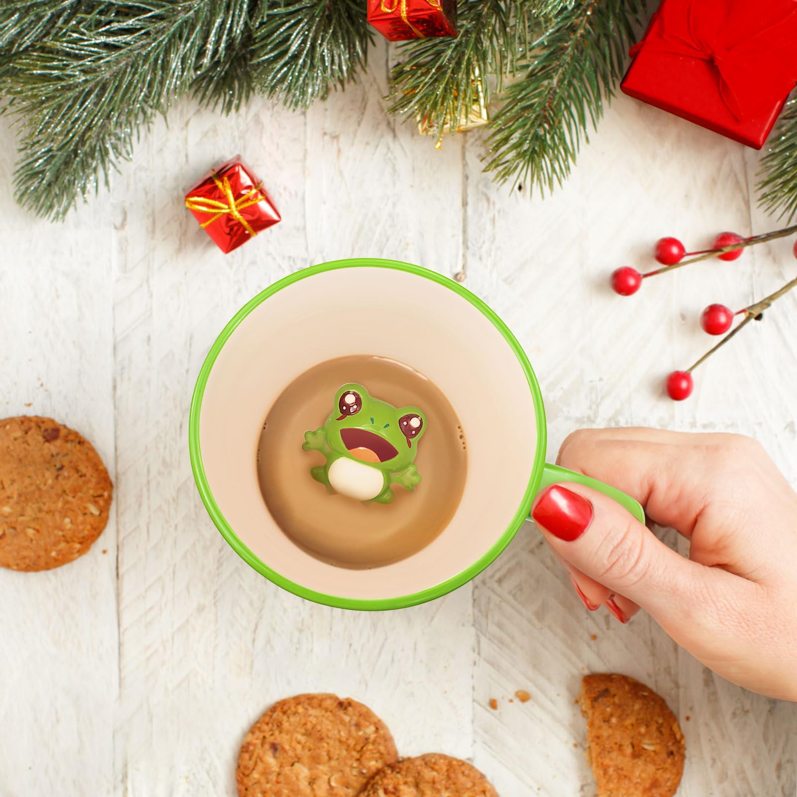 Tasse à café en céramique de haute qualité : vous cherchez une tasse à café ? Cette tasse à café grenouille est bien faite entre 1200 ℃ et 1400 ℃. NOSCOMP Tasse à café en céramique motif animal 3D (grenouille Matériaux : céramique. Tasse Fantaisie Tasse à Café Amusante De 414 Ml En Forme De Grenouille Avec Mug Grenouille Cette tasse amusante est un excellent cadeau de Noël, de Nouvel An, un cadeau d'anniversaire cool pour les femmes ou les hommes, et un cadeau parfait pour les fêtes de bureau et les fêtes de mariage. Tasse à café amusante avec motif animal mignon, amusez-vous à vous et à votre famille. Idéal pour boire du café, du thé, du lait, du jus, de l'eau, du chocolat chaud, de la crème glacée et d'autres boissons courantes. Ils vont adorer cet ajout unique à leur collection de tasses de cuisine Céramique de qualité professionnelle. Tasse fantaisie avec une jolie cuillère pour répondre à vos besoins d'agitation Si vous êtes marié, c'est un cadeau d'anniversaire exquis pour votre fils et votre fille aussi La tasse en céramique mesure 9,5 cm de haut x 6,3 cm de profondeur ; la cuillère mesure 11,4 cm Peut contenir environ 415 ml Très unique et pratique pour une utilisation quotidienne. Cette tasse à café fantaisie sera un nouvel ajout sur votre bureau. Sain et sûr : passe au lave-vaisselle mais ne passe pas au micro-ondes. ZME13486-Tasse à café en porcelaine 180ML. tasse expresso zakka tazas... Facile et pratique à tenir lorsque vous buvez. Tasse en céramique tendance : cool et adorable. Tasse cadeau : avez-vous des amis ou des membres de la famille qui sont fous des animaux ? C'est l'un des meilleurs cadeaux pour maman ou papa, grand-mère ou grand-père, votre mari ou votre petit ami, petite amie. Matériau céramique de haute qualité, lisse et fragile, anti-détérioration.