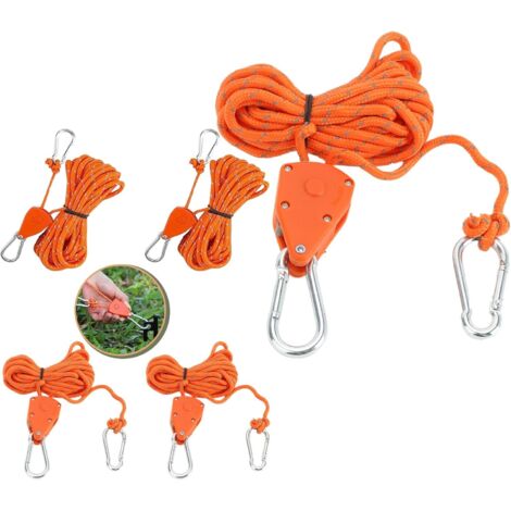 Cette fonctionnalité facilite la personnalisation en fonction de besoins spécifiques, garantissant un positionnement optimal des luminaires, des abat-jour ou des lampes LED pour plantes., 3., 【Sécurité et Stabilité】 Équipé de mousquetons en fer zingué, notre cliquet corde a une capacité de charge et une stabilité supplémentaires, assurant la sécurité des objets suspendus en minimisant le risque de glissement ou d'oscillation, améliorant ainsi la fiabilité., 4., 【Utilisation Créative】 Le paquet contient 2 morceaux de corde à cliquet avec crochet (chacun mesure 2,4 m de long). Lorsqu'une seule corde est insuffisante, vous pouvez relier les deux crochets ensemble, formant une corde plus longue sans avoir besoin d'achats supplémentaires, économisant ainsi du temps et améliorant la commodité., 5., 【Large Application】 Notre tendeur de corde a cliquet est adapté pour supporter les lumières LED des plantes pour une croissance optimale des plantes à l'intérieur. Les environnements industriels bénéficient de sa capacité à suspendre des équipements lourds tels que des ventilateurs ou des filtres, assurant ainsi une circulation d'air efficace. Idéal pour accrocher des lampes, des ventilateurs, des pots de fleurs ou même filtrer l'air. Chaque poulie supporte jusqu'à 69 kg, grâce à sa corde en nylon... Cliquet de corde réglable de 4 mm, 6 pièces de 4 m de cordon de serrage réfléchissant, cliquet de corde avec crochet pour fixation de tente (orange). Voir... Corde à Cliquet Avec Crochet 2 Pièces Corde à Cliquet Réglable 4M, Poulie à Cliquet Noir 1/8 Avec 2 Replacement Crochets Tendeur De Corde A Cliquet Reflechissante Pour Lampe Plantes Tente Randonnee 91671793 Corde Rope UlisemSangles Cliquet 1/4 Pouces Rope Ratchet Pour Lampe De Coissance 2 Pieces Corde De Crochet Reglable 88849545