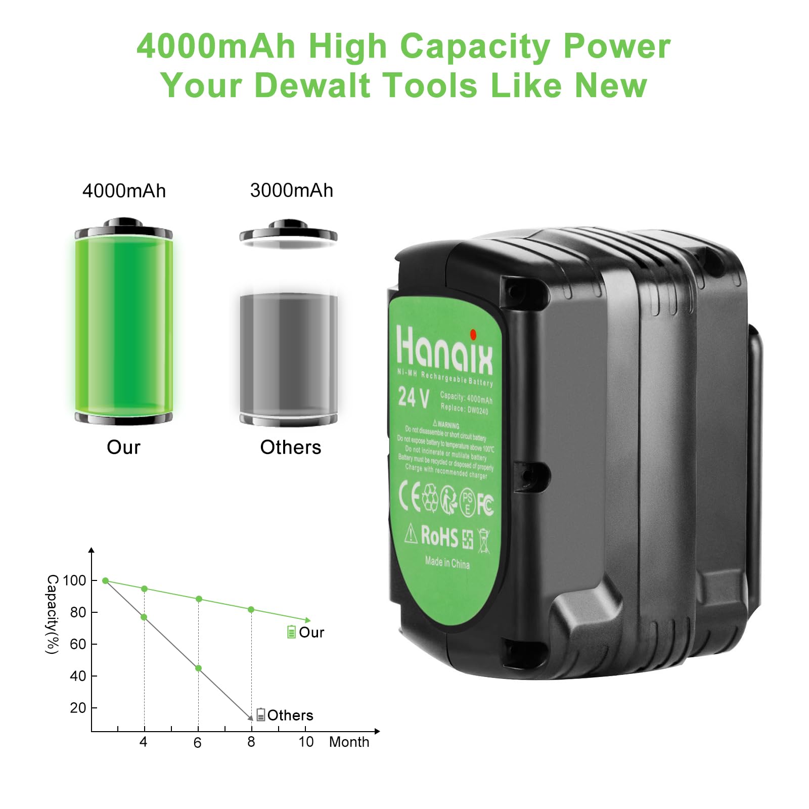 Tout problème de qualité, remboursement de 30 jours et garantie de 12 mois après réception de la marchandise. HAUTE CAPACITÉ ET GRANDE LONGÉVITÉ - Avec la haute capacité de 3Ah, cette batterie performante fournit la puissance dont vous avez besoin en toute situation. Pour changer la batterie d'origine de votre DE0240, DE0240-XJ, DE0241, DE0243, DE0243-XJ, DW0240, DW0242 POWERAXIS 24V 2.0Ah NiCd Replacement Battery De Walt DW0240 DW0242 Outils d'entraînement : DC222KA DC222KB DC223KA DC223KB DC224KA DC224KB DW004 DW004K DW004K-2 Greenworks Batterie 24V Akku Für Dewalt 24 Volt 4.0Ah Ni-MH DW0242 DW0240 DE0241 DE0243 Batterie Einhell Avec son voltage de 24V et sa capacité de 3Ah cette batterie pour Dewalt est 100% compatible avec votre batterie d'origine. Elle bénéficie d'une garantie de 1 an. La technologie au lithium n'a pas d'effet mémoire. Votre batterie peut donc être rechargée dès la fin de son utilisation Remplacer la batterie : DE0240 DE0240-XJ DE0241 DE0243 DE0243-XJ DW0240 DW0242 Outils d'entraînement : DC222KA DC222KB DC223KA DC223KB DC224KA DC224KB DW004 DW004K DW004K-2 DW004K2C DW004K2H DW005 DW005K-2 DW005K2C DW005K2H DW006K DW006K-2 DW006K2XE DW006KH DW007 DW007C2 DW007K DW007K-2 DW007K-XE DW007KH DW008K DW008K-2 DW008K-XE DW008KH DW017 DW017K2 DW017K2H DW017N Remplacer la batterie : DE0240 DE0240-XJ DE0241 DE0243 DE0243-XJ DW0240 DW0242