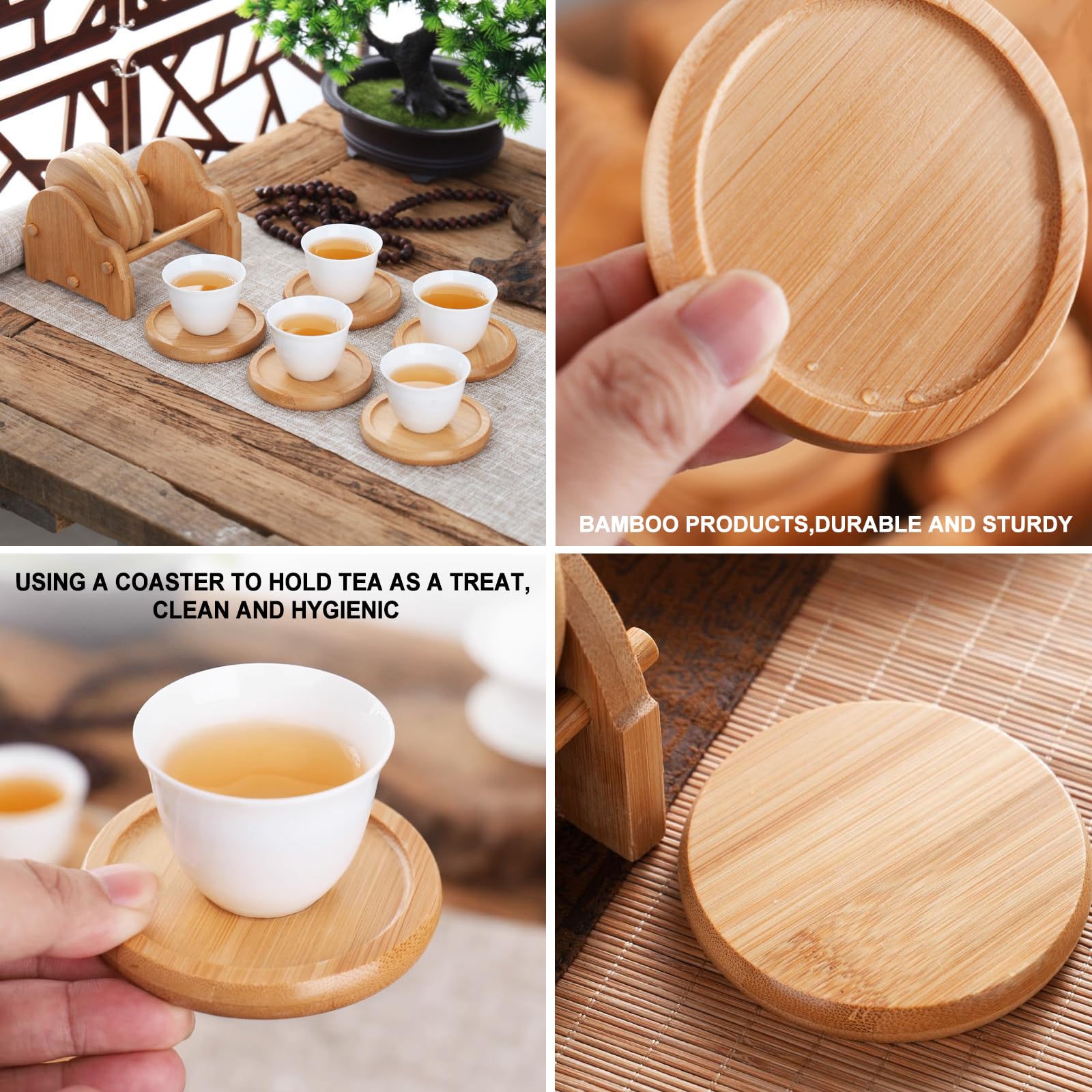 Bord surélevé : il est très robuste et avec les bords surélevés, il peut garder l'eau ou tout autre liquide dans le dessous de verre (plus de tables désordonnées). Grand pour toutes les tailles de tasses, verres, canettes. Il suffit de les nettoyer avec un chiffon humide et de les essuyer avec un chiffon propre et sec. Description du produit Dessous avec 4 patins en feutre antid rapants qui prot gent votre meuble ou votre table des rayures ou de l'usure et prot ge les meubles en bois. Ces dessous de verre ont un diam tre de 11 cm et une paisseur de 1,2 cm. Gr ce leur r sistance la chaleur, les dessous de verre conviennent toutes les boissons. Le support est l ger, facile ranger et ne raye pas les dessous de... Les bords sont polis et lisses, pas de bavures, pas de blessures à la main. Le bambou naturellement antibactérien est résistant à l'eau et ne moisit pas. Taille parfaite et facile à nettoyer : la taille ronde de 11 cm s'adapte à la plupart des tasses et contenants à boisson. Sous Verre Bois Lot De 6 Dessous De Verre En Bambou Pour Verres à Vin Sous Verre En Bois Dessous De Verre En Bois Lot De 6 Ronds D'acacia Avec Support Dessous de verre pour boissons avec support : support en métal noir inclus pour vous permettre d'organiser les dessous de verre, ce qui rend votre table basse plus soignée. Caractéristiques du produit ; Bois. Matériel. Réglable, Écologique, Durable, Antidérapant, Easy to use, Fait main ; Ronde. Forme. Adapté aux besoins du client