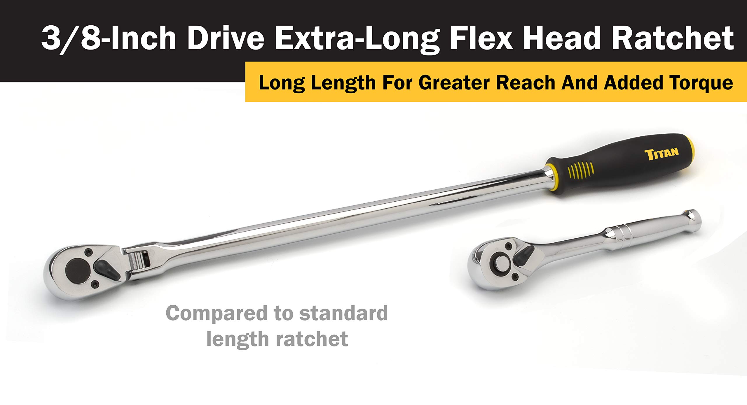 Titan 11301 Clé à cliquet à tête flexible extra longue à 36 dents à entraînement 3/8 x 45,7 cm dispose d'une poignée moulée confortable et est construit en chrome vanadium pour plus de résistance et de durabilité. Tête flexible à 180 degrés pour les applications difficiles d'accès | Fabriqué à Taiwan 8-19mm Flexible Clé à Cliquet Rochet Molette Plate Anneau Outil Chrome Vanadium Entraînement 3/8 | Longueur totale : 45,7 cm · Poignée confortable moulée et construction en acier au chrome vanadium pour plus de résistance et de durabilité... Faible nombre de dents et dents épaisses et robustes offrant plus de résistance pour appliquer un plus grand couple Clé à Cliquet à Tête Flexible De 3/8 Po X 18 Po De Long Titan Tools Le cliquet à tête flexible dispose d'un mécanisme à cliquet réversible à 36 dents qui produit un balayage de 10 degrés. Poignée confortable moulée et construction en acier au chrome vanadium pour plus de résistance et de durabilité Tête flexible à 180 degrés pour les applications difficiles d'accès., Fabriqué à Taiwan. Clé à Griffe Alu 36'' Longueur 900mm - Hanger - 121236 - Toute l'offre...