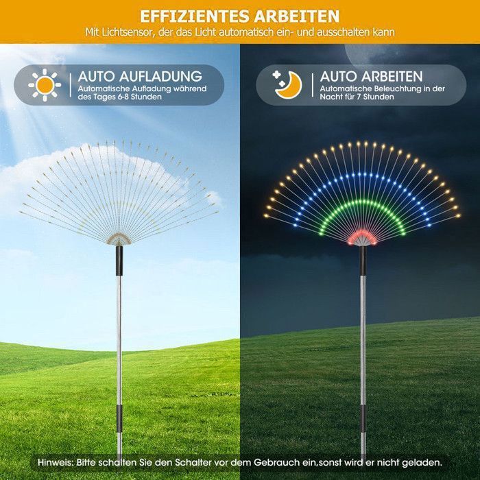 Lampes solaires de jardin créatives : créez vos formes préférées telles que des fleurs, des feux d'artifice, des cœurs, des spirales, des sphères, etc GIGALUMI Lot de 2 Solaires Extérieur Jardin,120 LED Feux d'artifice Solaires,Étanche Lampe Solaire de Pissenlit pour Cour, Pelouse, Fête, Patio, Décoration de Mariage (coloré Pas de câblage, pas de courant alternatif, sécurité et économie d'énergie. BORNE SOLAIRE ,200led (Muticolor)--Guirlande Lumineuse À 200 Led En Forme De Feu D'artifice Créez une atmosphère parfaite : les feux d'artifice sont idéaux pour l'éclairage extérieur, et sont parfaits pour les décorations de fête et de mariage. Style de croquis de griffonnage de Starburst sunburst Élément Feux d'artifice Rayons noirs Effet... 【Cadeau parfait】 Lampe solaire feu d'artifice, respectueuse de l'environnement et romantique en même temps, vos amis, votre amoureux et vos enfants vont l'adorer Elles stockent l'énergie solaire pendant la journée et s'allument automatiquement à la tombée de la nuit. Lampes à économie d'énergie à énergie solaire : ces lampes sont alimentées par des panneaux solaires de haute puissance.