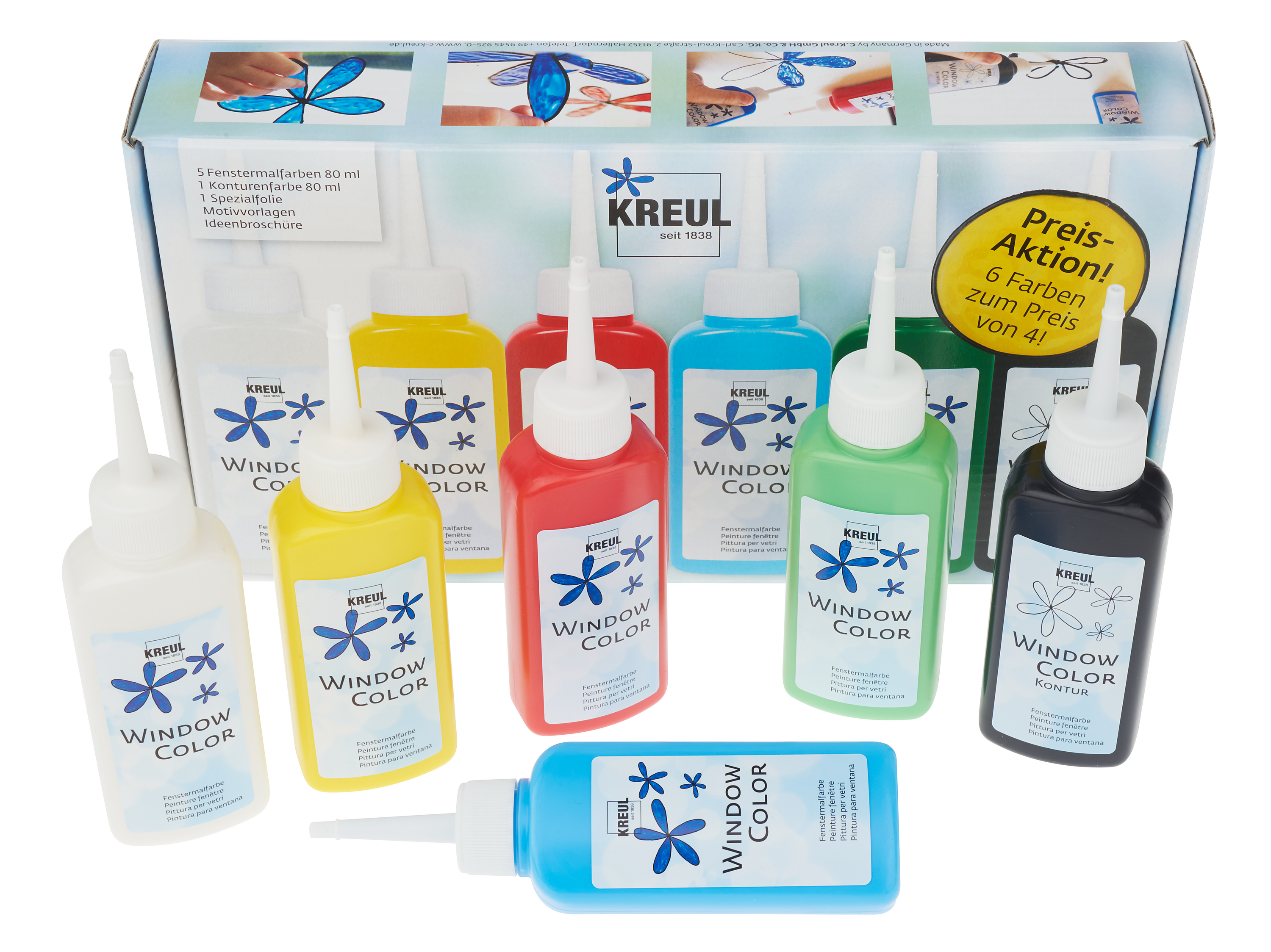 La couleur sèche reste lisse sur et a un effet glasähnlichen. Comme toutes les couleurs Window Colour peut vous prélevés sur film aufgemalt et dans état séché puis à une fenêtre ou sur d'autres surfaces lisses comme miroir et carrelage identifiable. Couleur à base d'eau , Sèche clair en KREUL Peinture acrylique pour fenêtres Window Color Kreul Window Color en verre transparent est la nouvelle version de la célèbre KREUL Hobby Line C2 Window Color couleur. 12 heures temps de séchage avant de le abzieht fini. KREUL Window Color Set Powerpack, 8 Fl. Zubehör - Window Color von... Pour enfants et adultes créatives de peinture pour fenêtre Enfants à partir de 6 ans peuvent utiliser les fenêtres fois couleurs à base d'eau merveilleux pour peindre des images. Les motifs doivent env. Contenu : 80 ml Couleur Violet Peinture pour fenêtres à base d'eau pour les enfants à partir de 6 ans. Peut être appliquée sur des surfaces lisses comme le verre, les miroirs, le carrelage, etc. Peindre sur le film spécial (laisser sécher environ 2 heures), puis peindre le motif (laisser sécher 24 heures Kit Vitraux Peinture Contours Window Color KREUL, 80 Ml | Loisirs Créatifs VBS Peinture Window Color Noel Vous pouvez ensuite les contours multicolore envies.