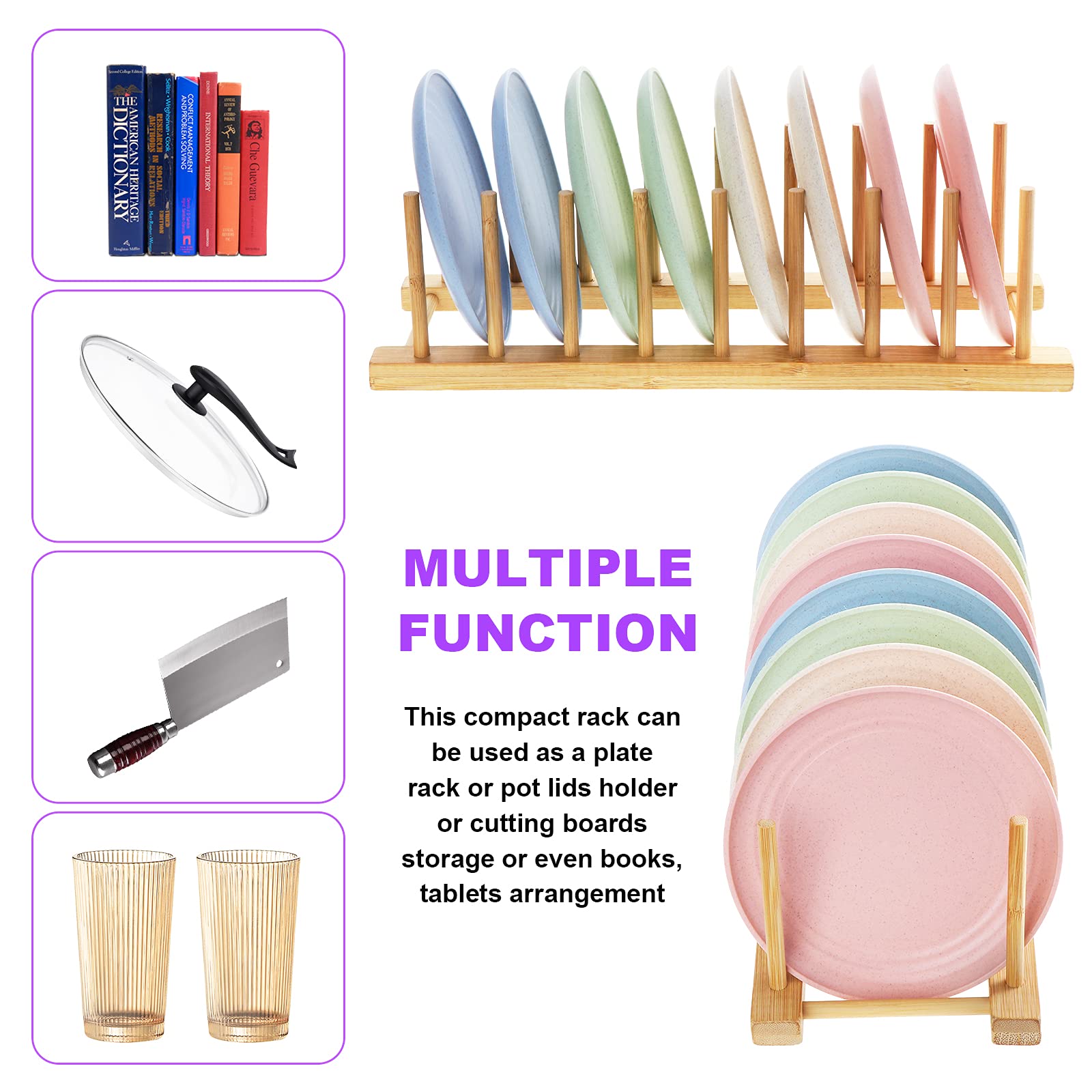 Matériau de qualité supérieure - L'étagère à assiettes pour armoire est fabriquée en bambou de qualité supérieure, qui a une texture unique sur la surface, pas de bavures sur les bords, pas facile à moisir, pas facile à déformer, solide et résistante pour une utilisation longue durée Montage facile : chaque support à vaisselle est livré avec 5 pièces, 2 supports inclinés et 3 barres de raccordement. Ensemble de supports en bambou : notre kit de rangement pour armoire de cuisine comprend 2 égouttoirs à vaisselle en bambou qui peuvent contenir un total de 10 ustensiles de cuisine. Nous pensons qu'il doit être une bonne aide pour vous Rangement Assiette Égouttoir à Vaisselle Cuisine 2 Paquets 5 Compartiments Bois Bambou Support Bois Dimensions du produit : Dimensions totales de l'égouttoir : 30 x 11,5 x 19 cm. Pour cela, vous avez besoin du support d'assiettes WATUNID en bois pour que votre cuisine soit toujours bien rangée. Il n'y a pas non plus de problème à utiliser comme étagère à livres pour stocker des livres ou des enregistrements. Les assiettes et tasses en désordre méritent leur propre place, et nous pensons qu'une cuisine bien rangée apporte non seulement commodité et facilité aux cuisiniers, mais rend également les repas préparés encore plus délicieux. Poids léger et bonne taille, parfait pour les espaces de cuisine étroits Veuillez l'installer avec un peu de pression pour vous assurer que les pièces de l'égouttoir sont solidement fixées Pas de coins tranchants, avec une surface élégante et un poids léger, vous avez juste besoin de le nettoyer avec de l'eau et un chiffon. · Fabriqué en bambou... Insérez les tiges de connexion dispersées dans les trous du support pour obtenir un lave-vaisselle complet. Range Assiettes Lot De 2 Supports D'Assiettes En Bois,5 Fentes En Bambou Range Cd 2 pcs Wooden Dish Rack] : Petite taille, léger, robuste et durable, adapté pour une cuisine compacte, utilisation raisonnable de l'espace de comptoir réduit... Ce n'est pas seulement un bon assistant pour vous, mais aussi un excellent cadeau que vous pouvez partager avec votre famille et vos amis. Il peut être utilisé pour stocker différentes pièces de vaisselle, telles que des tasses, des assiettes, des plateaux, des bols ou des planches à découper. Notre organisateur d'armoire de cuisine peut non seulement être utilisé dans la cuisine pour les tasses, les assiettes, les plateaux et les bols, mais aussi dans le bureau pour les livres, les disques vinyles et tout ce que vous pouvez imaginer. Le support de poêle pour l'armoire est équipé de planches inclinées et augmente la hauteur arrière de 10,5 cm, de sorte que vous pouvez atteindre les assiettes plus facilement. Taille parfaite et design pratique : la taille totale du support de plateau de rangement est de 30 x 11,5 x 19 cm, il y a 5 fentes, chaque fente est espacée de 5 cm.