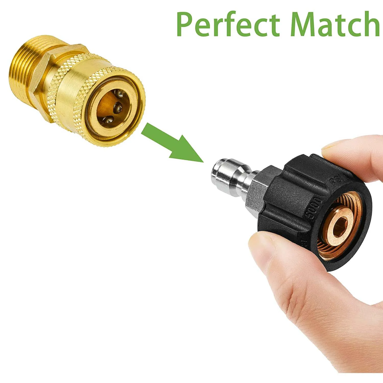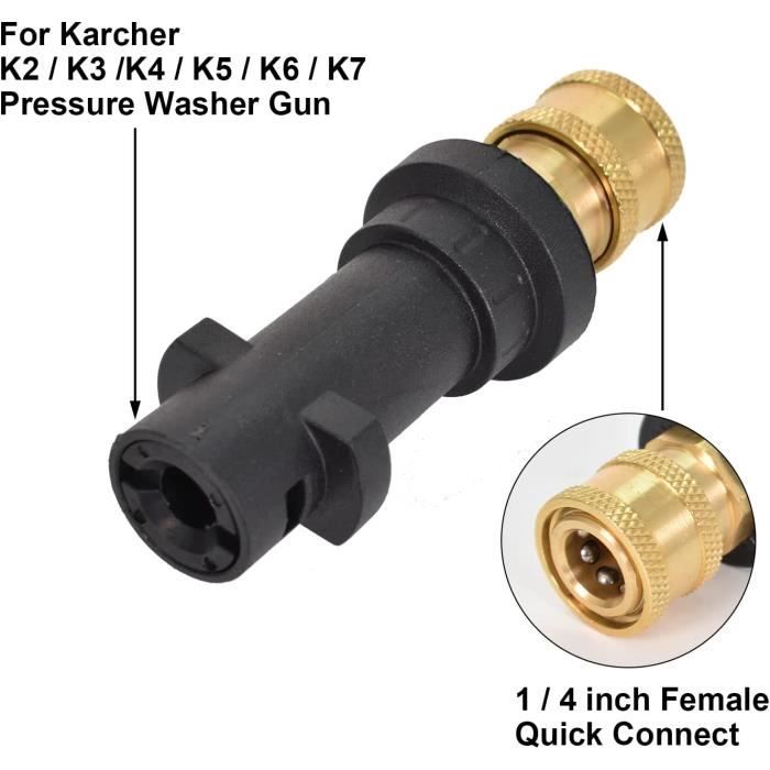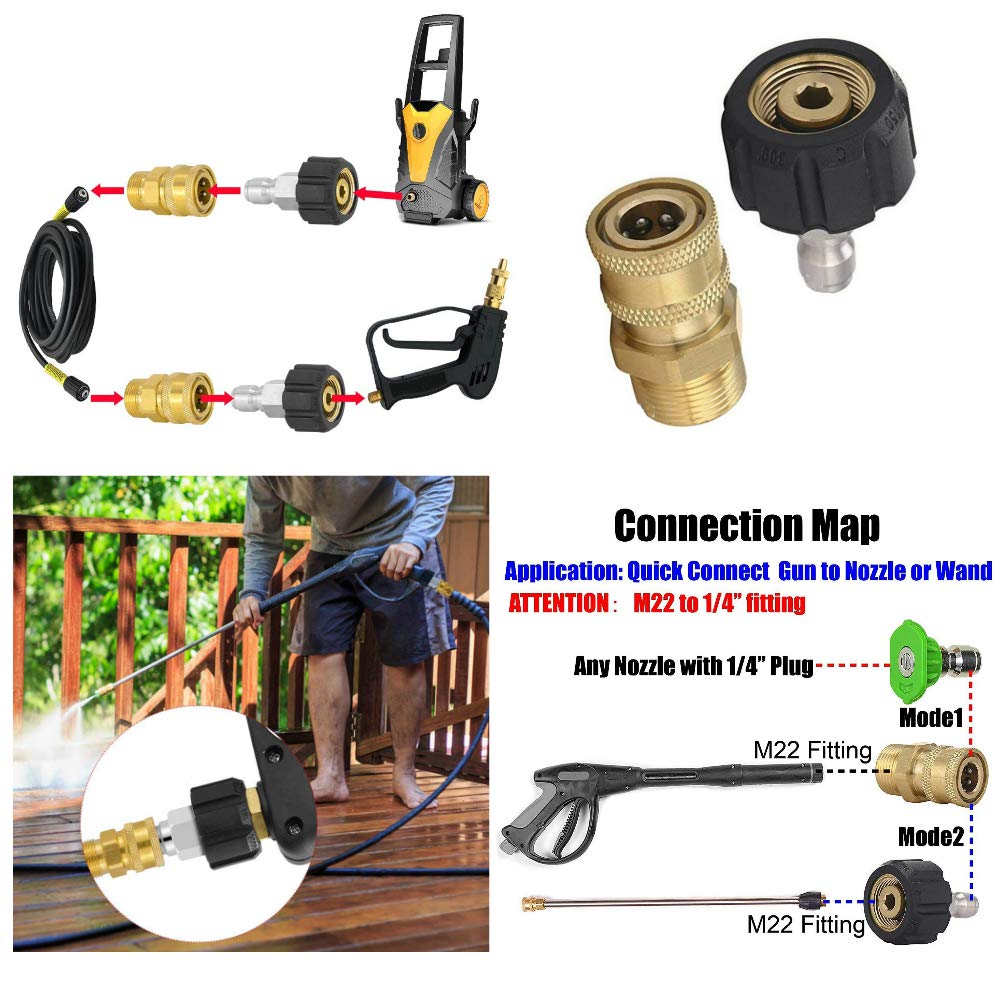Caractéristiques : Matériaux : plastique, laiton et acier inoxydable. Fournit des raccords sûrs et rapides, simple à monter et à démonter. Contenu : 1 kit de connexion rapide., Remarque : 1., Les mesures étant prises à la main, les tailles indiquées peuvent varier légèrement., 2., La couleur de l'article peut varier de celle de la photo, en fonction des paramètres d'affichage et de luminosité de votre ordinateur. Adaptateur de sortie M22 pour tuyau de lavage à haute pression, convertisseur de connecteur pour Nilfisk Stihl karcher adaptateur karcher quick connect adaptateur nettoyeur haute pression Matériau de qualité : l'adaptateur de nettoyeur haute pression de jardin est fabriqué en laiton. Fournit des raccords sûrs et rapides, simple à assembler et... TAPKUA Kit D'adaptateur Pour Nettoyeur Haute Pression M22 1/4" Quick Connect, Pistolet Raccord Rapide Pour Tuyaux Haute Pression Pression maximale : 4000 PSI Diamètre intérieur : 14 mm, pas 15 mm. La meilleure équipe après-vente : cet adaptateur pour nettoyeur haute pression rendra vos travaux de lavage plus efficacement. La pression de fonctionnement est jusqu'à 5 000 psi. Matériau de qualité : l'adaptateur de nettoyeur haute pression de jardin est fabriqué en laiton massif. Remarque sur la taille : le diamètre intérieur est de 14 mm, pas de 15 mm.