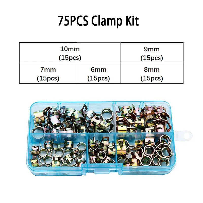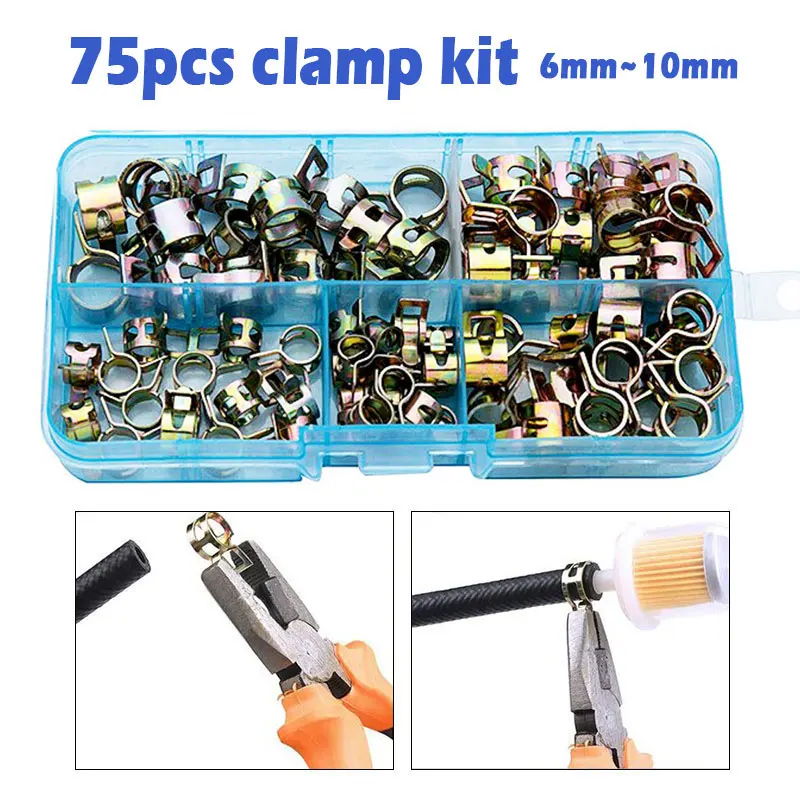 Emballage du produit : notre paquet contient 15 pinces à ressort de 6 mm de diamètre intérieur, 15 pinces à ressort de 7 mm de diamètre intérieur, 15 pinces à ressort de 8 mm de diamètre intérieur, 15 pinces à ressort de 9 mm de diamètre intérieur et 15 pinces à ressort de 10 mm de diamètre intérieur. ★ Resserre les tuyaux de carburant automobile. ★ 15 pinces à ressort de 7 mm de diamètre intérieur. Large gamme d'applications : nos kits de 75 colliers de serrage pour conduite de carburant sont disponibles en 5 tailles avec une forte compatibilité, adaptés à tous les types de tuyaux en silicone, conduites de carburant, conduites de gaz, conduites d'air, lignes de vide, conduites d'eau dans la plupart des voitures, camions, SUV, motos, bateaux sur le marché. Le produit est emballé dans une boîte en plastique transparent, chaque taille est clairement divisée, facile à choisir et à utiliser. ★ 15 pinces à ressort de 10 mm de diamètre intérieur. Zerone colliers de serrage 75 pièces collier de serrage 6mm/7mm/8mm/9mm... ★ Couleur : plaqué zinc coloré. Caractéristiques et fonctions du produit : ★ Résistant à l'usure, durable, solide et facile à utiliser. Polissage de surface à 360°, anneau intérieur lisse et sans bavure, qui n'endommagera pas le tuyau, et empêche également la pince de couper le tuyau pour causer des dommages, ce qui conduit à l'écoulement du liquide. Colliers de Serrage à Ressort Professionnels : Gamme Complète Nous avons une boîte transparente avec des compartiments pour différentes tailles de colliers de conduite de carburant, ce qui est pratique à ranger et à utiliser, et vous permet d'économiser du temps et des efforts dans la recherche. Collier De Serrage Rs 75 Colliers De Serrage à Ressort - 5 Tailles (6mm à 10mm) - Pour Tuyaux Collier De Serrage électrique Convient également pour les tuyaux domestiques qui doivent être fixés, votre accessoire de voiture indispensable Facile à installer et à ranger : le kit de conduite de carburant est facile à installer, il suffit de serrer les cosses, d'étendre les anneaux, d'insérer le tuyau et de libérer les pattes pour serrer le tuyau. ★ 15 pinces à ressort de 8 mm de diamètre intérieur. Blister de 100 colliers serrage deux oreilles acier zingué zone de... Contenu : ★ 15 pinces à ressort de 6 mm de diamètre intérieur.