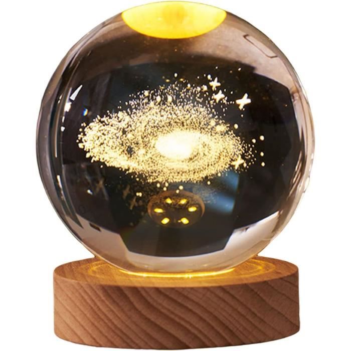 Les boules spatiales peuvent être utilisées comme veilleuse ainsi qu'une très belle décoration. Motifs exquis 3D Chaque boule de cristal est livrée avec une base en bois pour fournir une source de lumière pour la boule de cristal. Le blamp ase est alimenté par un câble d'alimentation USB, qui peut être connecté à différentes alimentations, chargeurs de téléphone portable, alimentation mobile, ordinateurs, etc. Boule De Cristal 3D Planètes, Modèle Miniature GravéVeilleuse Lampe Planete Boule De Cristal 3D Avec Base LED - Veilleuse Astronomie Pour éclairage Spécial La boule de cristal en tant qu'élément décoratif vous apporte un plaisir visuel et crée une atmosphère chaleureuse avec une jolie veilleuse, vous accompagnant tranquillement pour dormir chaque nuit. Le système solaire symbolise l'exploration de l'espace cosmique inconnu et exprime l'esprit de poursuivre des possibilités infinies et de se dépasser constamment. Cadeau unique : la boule de cristal spatiale galaxie est un cadeau astronomique idéal pour les amateurs d'astronomie et un cadeau en cristal pour la famille, les amis ou les enfants pour la Saint-Valentin, les anniversaires, Noël et autres fêtes. La lampe galaxie peut également être utilisée pour créer une atmosphère chaleureuse d'éclairage lors de rendez-vous, fêtes et autres occasions. Décoration d'intérieur : la boule modèle de système solaire peut être utilisée comme élément décoratif dans la chambre, le salon, le café, le bar, etc. Chaque boule de cristal est livrée avec une base en bois pour fournir une source de lumière pour la boule de cristal. Décoration d'intérieur : la boule modèle... Base dégradée colorée : la base LED adopte un mode d'éclairage dégradé coloré, qui peut changer de couleur automatiquement lorsqu'il est allumé, ce qui rend le motif du système solaire plus clair, beau et romantique.