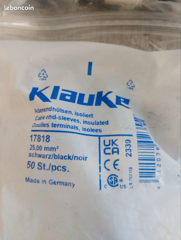 Dimensions précises - Avec une longueur de 6 mm, les embouts permettent un serrage dans un espace restreint, ce qui les rend idéales pour les applications avec un espace limité. Installation électrique facile - Les manchons de câble peuvent être montés facilement et de manière fiable avec une pince à sertir et une pince à dénuder. Par exemple pour les câbles d'alimentation, les câbles d'alimentation, les différents câbles, les différents moteurs, les relais, les remorques, le camping ou les haut-parleurs KLAUKE - Embase à cheville standard PA6 Réf EC9KL | Clim Elle offre une connexion fiable pour les conducteurs d'une section transversale de 0,25 mm². Elle offre une connexion fiable pour les conducteurs d'une section transversale de 0,25 mm² Description du produit La virole Kalitec AE02506HBL est certifiée UL selon (E491449). Manchon d'extrémité AWG 24 en cuivre étamé galvaniquement avec collier en plastique. Il permet une connexion fiable pour les conducteurs d'une section de 0,25 mm² Dimensions précises - D'une longueur de 6 mm, les embouts permettent le sertissage dans les espaces les plus restreints, ce qui les rend... Ils sont compatibles avec divers bornes de lustre et autres connecteurs de serrage Pour professionnels, industriels, électriciens Les embouts de câble sont isolés et homologués UL pour assurer une connexion électrique sûre. Ils sont fabriqués en cuivre de haute qualité et offrent une conductivité élevée et une résistance à la corrosion 62000 Malette complète avec Pince JOKARI QUADRO 3 chargeurs embouts... Embout Cable Velo Kalitec AE02508GE Lot De 500 Embouts De Câble I Isolés I Section 0 Câblage De Surface Les manchons de câble trouvent leur place dans de nombreux domaines différents et peuvent être utilisés et utilisés.