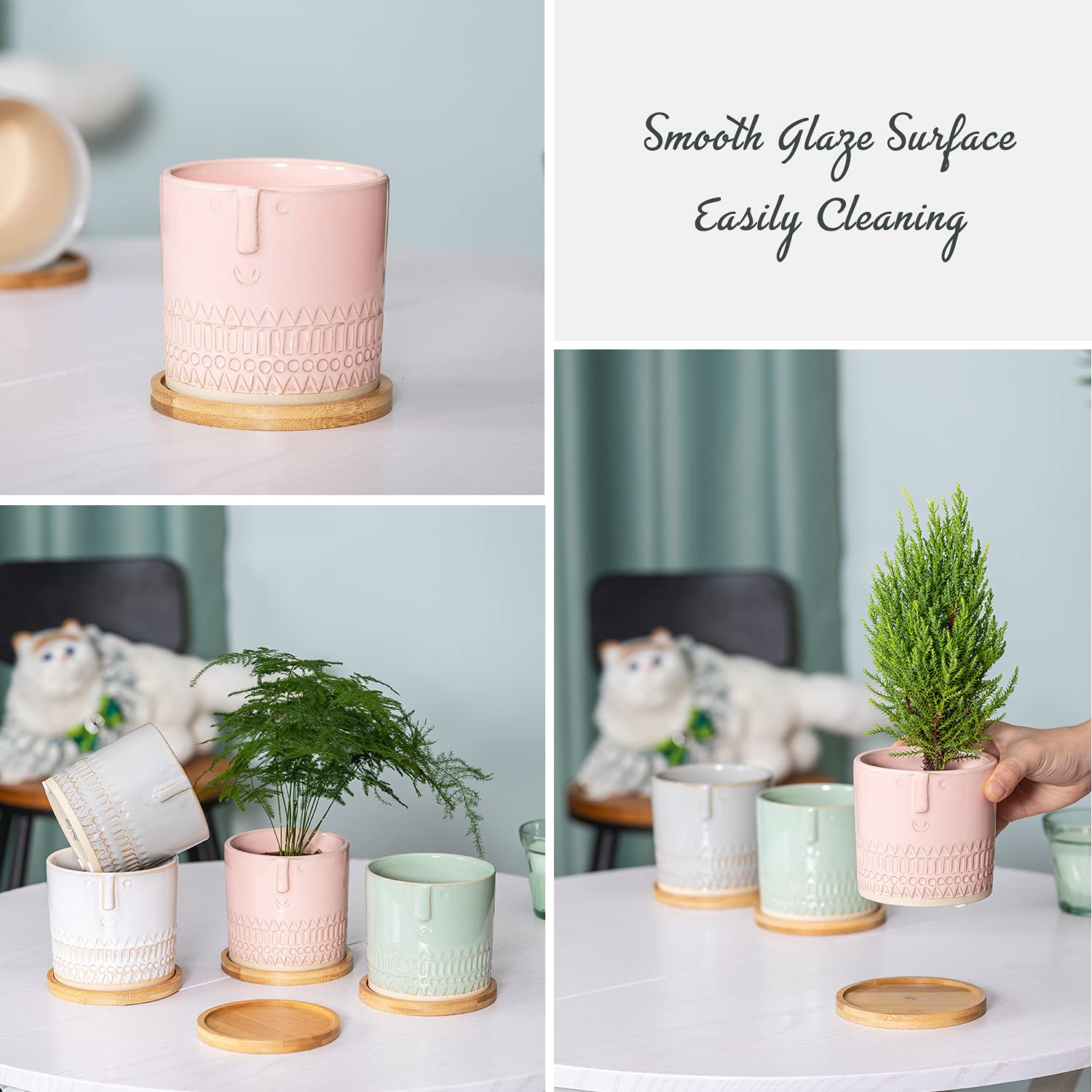 Dimensions : 9,9 cm de diamètre x 9,4 cm de hauteur. Contenu du paquet : 1 4 pots de fleurs. Plateau assorti : les plateaux fonctionnent parfaitement pour recueillir l'excès d'eau et de terre. Couleur 20 or Pots de fleurs en céramique colorés de Style nordique Lot de 4 pots de fleurs en céramique de 10,2 cm (plantes non incluses). Excellent pour les plantes prospérent. Ce pot de fleur peut pleinement répondre à vos attentes pour construire un magnifique jardin dans votre cour Vous pouvez également utiliser le pot avec le bouchon si vous n'avez pas besoin du drain. Trous de drainage : ces petits pots de fleurs avec trous de drainage permettent à l'eau de s'écouler à temps, ce qui peut faire respirer vos plantes plus librement. Matériau en céramique : ces pots de fleurs sont fabriqués en céramique de haute qualité, fabriqués à haute température. Vous pouvez également utiliser le pot sans ces soucoupes si vous placez les pots de fleurs à l'extérieur. Pot De Fleurs Mural FIVEAGE Lot De 4 Pots De Fleurs En Céramique De 10,2 Cm Avec Plateaux En Bambou, Style Moderne Cylindrique Avec Trou De Drainage Pour Fleur Pot De Fleur Mural Leroy Merlin Pot de germination,Plateaux de semis à 12 trous,démarreur de graines... Excellente décoration : Design simple et moderne plein de sens artistique, très approprié pour décorer les rebords de fenêtre, les bureaux, les tables à manger familiales, les cours et les jardins.