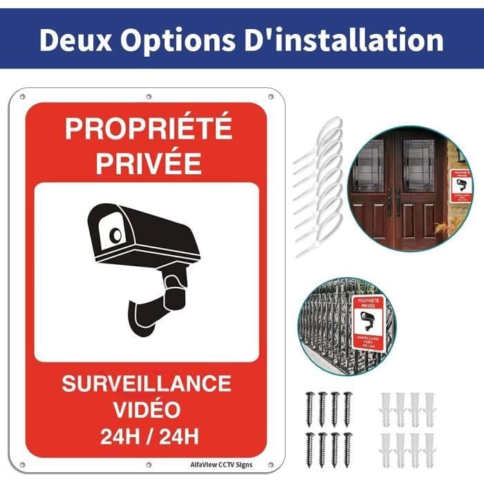 Grand, gras et avec une couleur contrastée, il est visible de loin. Panneau De Signalisation "Attention ! Vidéosurveillance !", 2 Pcs, 30 X 20 Cm, Panneau En PVC De 1 Mm Avec Trous De Perçage, Panneaux De Surveillance Panneau pour chien : vos zones marquées peuvent facilement attirer l'attention. Panneau de vidéosurveillance en métal de haute qualité, fabriqué en aluminium brossé robuste et la surface est plus texturée. 2 Panneaux Caméra de Surveillance, 8.5cm3 cm Alarme Video Surveillance en Aluminium, Propriété Privée Adhesif, Plaque 24H Vidéo Surveillance Extérieure Résistant aux UV Caméra de surveillance pour chien : surface lisse pour un nettoyage et un entretien faciles. Vidéosurveillance : un environnement sûr, le panneau de surveillance de la caméra peut vous donner une grande tranquillité d'esprit. Matériaux de haute qualité : nos panneaux de vidéosurveillance sont constitués de plaques d'aluminium de haute qualité, imperméables, résistantes aux UV... Pour clôture, cour, maison, rue, chemin, jardin, pelouse. Cela dure plus longtemps et ne tombe pas facilement. Lot De 2 Panneaux De Vidéosurveillance Privée Dsgvo - En Panneaux de vidéosurveillance : 30 x 20 cm. Décollez simplement le film protecteur et appliquez-le à l'endroit souhaité. Panneau de protection I chien : plaque d'avertissement facile à installer, cette plaque dispose de quatre trous pré-percés, autocollant à l'arrière. Le logo est évident : gravure UV, base noire avec inscription claire et distinctive en gris foncé. Plaque pour chien : vos points marqués peuvent facilement attirer l'attention.