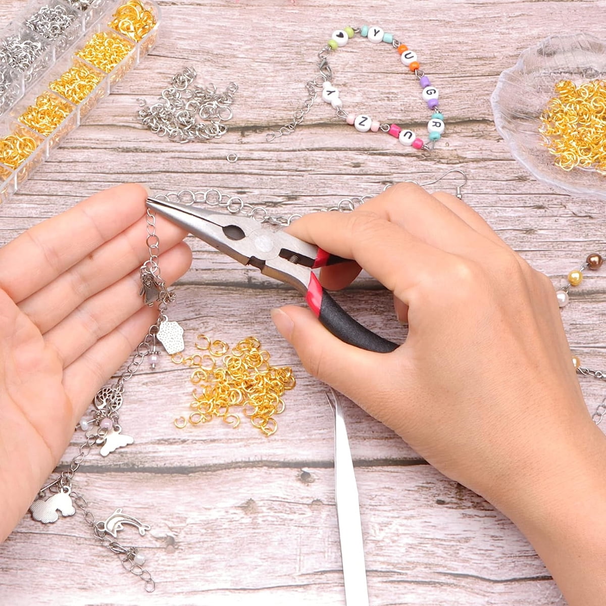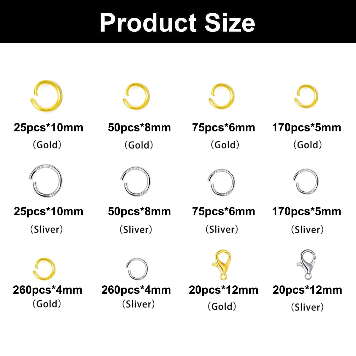 BQTQ 3180 Pcs Anneaux ouverts et fermoirs à homard,Kit de Fabrication de Bijoux Accessoires de Bijoux DIY Kit, Anneaux Ouverts pour Bracelet et Collier,6 Couleurs Spécifications Fermoirs à homard Quantité: 180 pièces, 30 pièces par couleur Matériel: alliage de fer Taille: 12 mm de longueur Couleur: 6 couleurs (or brillant, argent, bronze, argent terne, or, or rose) Ouvrir les anneaux de saut Taille et quantité: 4 mm de diamètre (250 pièces par couleur) 6 mm de diamètre (150 pièces par couleur) 8 mm de diamètre (100 pièces par couleur) Matériel: alliage de fer Couleurs: 6 couleurs (or brillant, argent, bronze, argent terne, or, or rose) Le package comprend 180 rouleaux pièces fermoirs mousquetons 12 mm 1500 pièces anneaux ouverts de 4 mm 900 pièces anneaux de saut ouverts de 6 mm 600 pièces anneaux de saut ouverts de 8 mm Ouvre-anneau de saut 1 pièce pince à épiler 1 pièce Boîte de rangement 1 pièce 24 grilles 6 couleurs : livré avec 6 crochets de boucles d'oreilles et anneaux ouverts (or brillant, or, argent terne, or rose vif, argent, bronze), 2 couleurs de tiges de boucles d'oreilles, épingles à œil et épingles à tête (or et argent terne 6 couleurs vives: les fermoirs à homard et les anneaux ouverts sont disponibles en 6 couleurs différentes, or brillant, argent, bronze, argent terne, or et or rose. Kit Boucle D'oreille A Fabriquer Kit De Fabrication De Bijoux, Anneaux De Saut Ouverts, Fermoirs Fermoir Collier Matériau de qualité supérieure: les fermoirs à homard et les anneaux de saut ouverts sont fabriqués en alliage métallique de qualité, sûrs et durables, adaptés à divers projets de fabrication et de réparation de bijoux. Kit Fabrication Bijoux Ensemble de 200 anneaux 100 fermoirs, fermoirs à homard, anneaux de saut ouverts for connecteurs de Bracelet et de collier, Kit de... 1 boîte de Kits de fabrication de bijoux, fermoir à homard Différentes couleurs vous aident à faire une grande sélection pour différents types de fabrication de bijoux, obtenez simplement votre propre style. Kit de fabrication de bijoux: Le forfait comprend 180 fermoirs à homard de 12 mm, 1500 anneaux de saut ouverts de 4 mm, 900 anneaux de saut ouverts de 6 mm, 600 anneaux de saut ouverts de 8 mm, 3180 kits de fermoirs de homard à anneau de saut au total; En outre, venez avec 1 ouvre-anneau de saut, 1 pince à épiler incurvée et 1 boîte de rangement 24 grilles, suffisante pour votre grand projet de fabrication de bijoux.