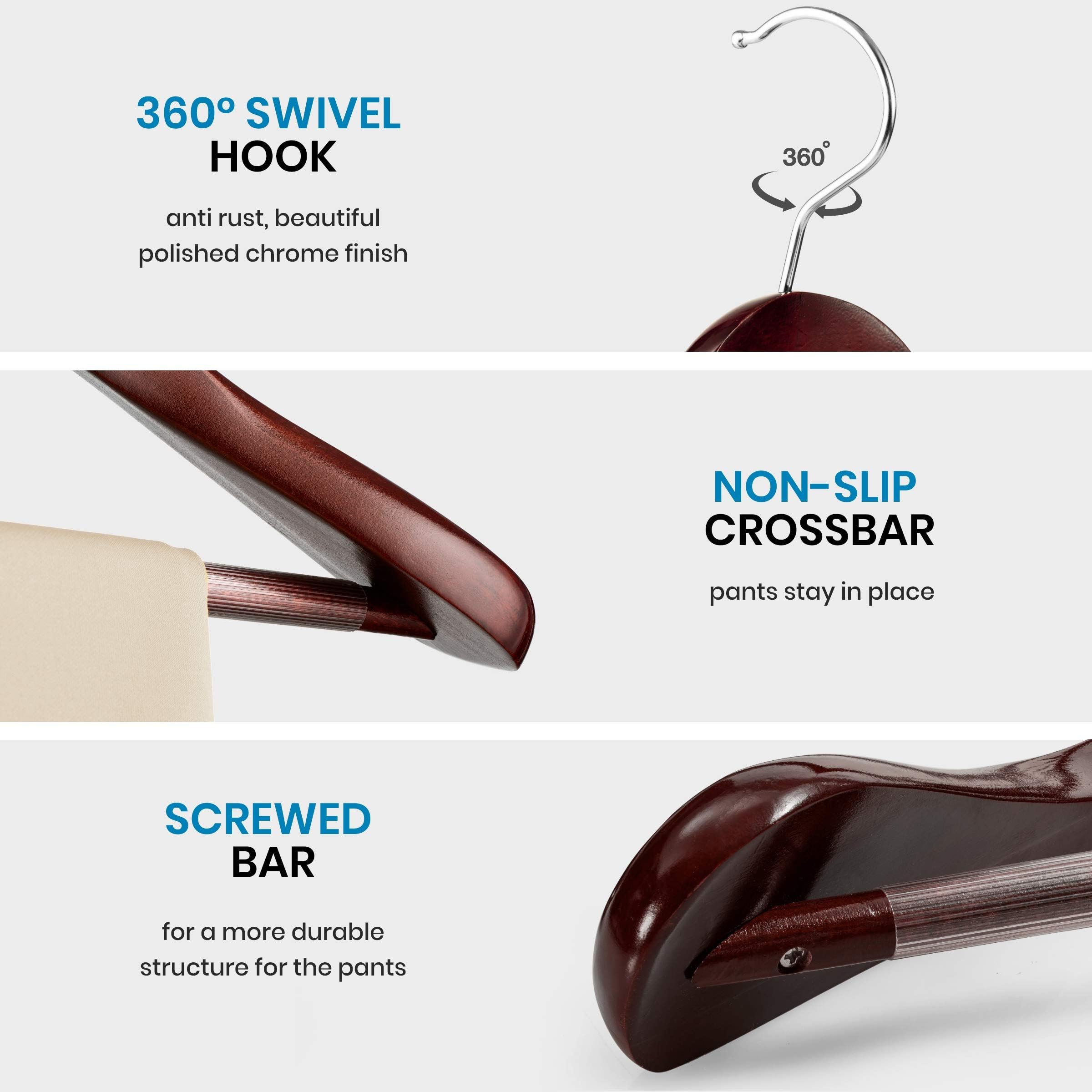 Ulimart Lot de 6 cintres en bois avec crochets robustes et barre antidérapante pour pantalons, pulls, vêtements lourds (noyer) Construction en bois massif pour une élégance durable, Fabriqués à partir de bois massif de qualité supérieure, ces cintres combinent une durabilité naturelle avec une finition parfaitement lisse, Ils transforment organisation du placard en un affichage de style intemporel, rehaussant ensemble de votre espace de rangement,, Design large... ●Conserve la forme : cintres incurvés vers l'intérieur, épaules larges, répartissent le poids du vêtement uniformément et préserve les colliers et drapés pour garantir que les costumes et les manteaux conservent leur forme sur mesure. Ils aident à répartir le poids du vêtement uniformément et préservent la forme des épaules et le drapé des vêtements. Rendez également votre placard plus avec un design retotant à 360 degrés permettant aux utilisateurs de tourner facilement le cintre sur le côté pour vérifier les vêtements sans même les retirer du porte-vêtements. Luxe et durable : cintres en bois fabriqués en bois de lotus de qualité supérieure, ils ont été polis pour une finition sans éclats et laqués pour faire ressortir son grain de bois exquis. Les épaules élargies adoptent une nouvelle technologie d'épissure pour éviter le détachement, extrêmement longue durée de vie jusqu'à 2 fois plus longue que les anciens. De larges cintres également parfaits pour accrocher pull, manteau, chemise et pantalon qui ont besoin de maintenir leur forme. La finition naturelle lisse donne un look captivant à votre placard. La barre robuste recouverte d'un tube en caoutchouc antidérapant empêche le pantalon de tomber et de ne pas se froisser. Cintres Bois Leroy Merlin Lot De 6 Cintres En Bois Massif Avec épaules Très Larges Cintres En Bois Brico Dépôt Cintres de costume en bois massif à épaules larges, 2 pièces, avec surface lisse, adaptés aux pulls, pantalons et vêtements lourds · 16,63€. 10 vendus 4. Cintre... Lot d 6 cintrs n bois massif avc épauls très largs