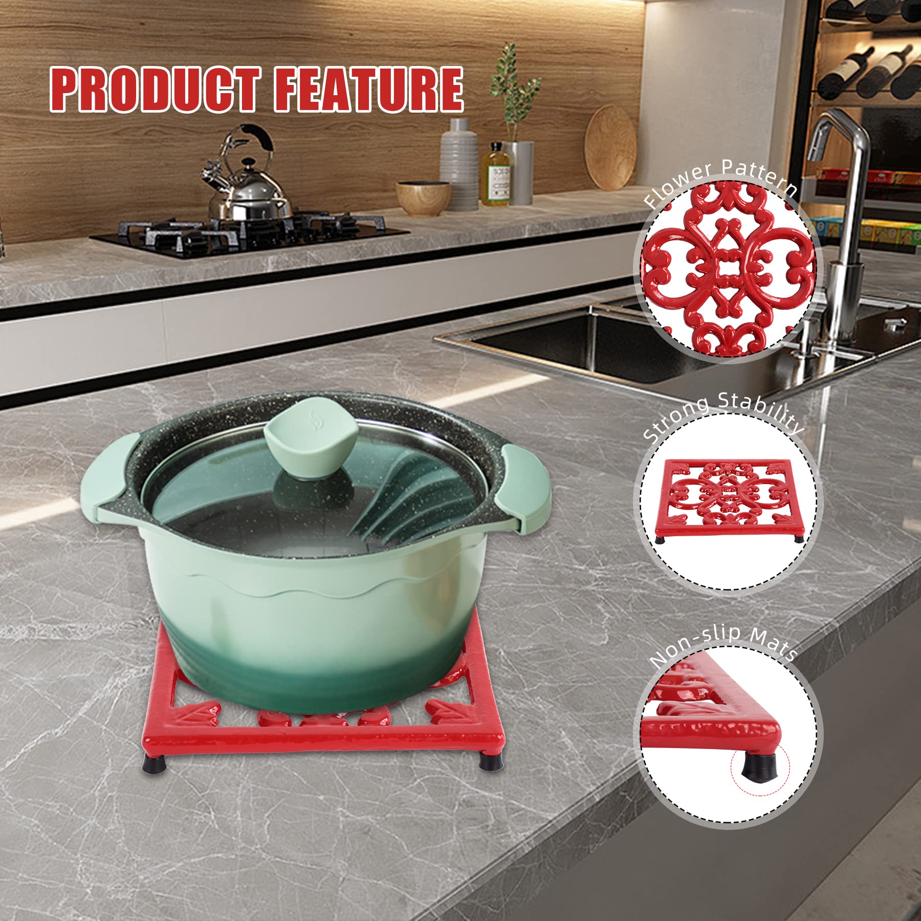 Ajoutez une touche de charme vintage à votre cuisine avec notre dessous de plat Minluful en fonte. Ancien Dessous de Plat en Fonte Verte Pomme - Vintage French Finds Le dessous de plat pour casseroles et poêles dispose de quatre poteaux antidérapants de 2,2 cm de haut qui empêchent non seulement le glissement, mais réduisent également efficacement le transfert de chaleur à la surface de la table et brûlent le plan de travail. Le Bon Coin Dessous De Plat MINLUFUL Dessous De Plat En Fonte Pour Plats Chauds, Motif Citrouille, Dessous De Plat Décoratif Pour Casseroles Et Poêles Chaudes, Tapis Rond En Métal Résistant à La Chaleur Pour Plan De Travail Dessous De Plat Fonte Multifonction : le dessous de plat vintage de style ferme est à la fois beau et pratique, non seulement pour les casseroles et poêles chaudes, mais également adapté pour les plats chauds, les théières et autres ustensiles de cuisine comme dessous de plat. Le dessous de plat pour casseroles et poêles dispose de quatre poteaux antidérapants de 2,2 cm de haut qui empêchent non seulement le glissement, mais réduisent... C'est le choix parfait pour les ménages occupés et ceux qui apprécient une maison nécessitant peu d'entretien. Résistant à la chaleur et sans odeur : le dessous de plat en fonte de haute qualité a une meilleure résistance à la chaleur par rapport aux dessous de plat en silicone, même à des températures élevées pendant de longues périodes, il ne produira pas une odeur similaire à celle du plastique fondu et d'autres substances nocives, protégeant votre santé et celle de votre famille. Le design vintage en métal ajoute une touche de charme rustique à votre intérieur et ne manquera pas de susciter la conversation.