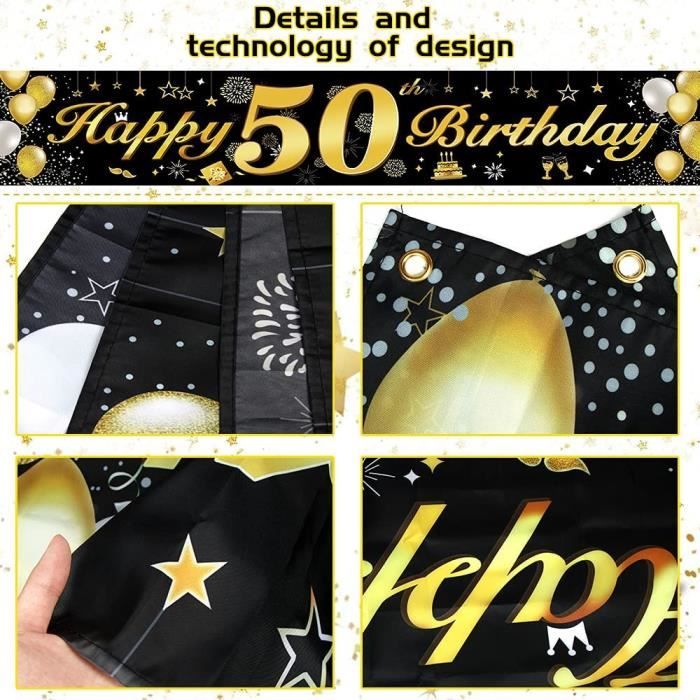 [CONCEPTION UNIQUE] Vous obtiendrez 1 bannière de fond de joyeux anniversaire que nous avons conçue avec des ballons, des feux d'artifice, un gâteau, du champagne et plus encore avec des chiffres et des lettres Happy Birthday ;parfaits pour la décoration votre fête d'anniversaire. Cette bannière d'anniversaire colorée avec un motif mignon et une impression haute définition est plus claire et ne se décolore pas facilement, parfaite pour créer une atmosphère charmante pour votre grand moment ! Cette bannière de fond d'anniversaire colorée ajoutera à coup sûr de la joie à une fête d'anniversaire. Faits saillants principaux Service Satisfaisant : Si vous avez des problèmes avec notre décoration anniversaire avant de commander ou des problèmes après réception de la bannière de fête, veuillez nous en informer immédiatement. Nous offrons des solutions satisfaisantes qui vous aideront à résoudre. Matériaux de Qualité : La décoration 50 ans anniversaire homme est en tissu... Chapitre 50 Ans Joyeux Anniversaire Nées En 1972 T-Shirt[u25800... Anniversaire 50 Ans Deco Anniversaire Noir Et Or Joyeux Anniversaire 95 Anniversaire De La Bougie D'anniversaire Sous Decoration Anniversaire Exterieur Drapeau Francais [Taille parfaite] Cette bannière de fond mesure environ 185 x 110 cm, assez grande et assez longue pour la décoration de fête. Ballons Noir Et Or Décoration Anniversaire 40 Ans Noir Or - Bannières, Confettis, Ballons Pour Fête De Femme Et Homme - Maison Ballon Or Et Noir [Facile à installer] Cette bannière d'anniversaire est facile et simple à installer. [MATÉRIAU DE HAUTE QUALITÉ] Fabriquées en polyester de haute qualité, nos bannières de fond d'anniversaire sont durables et lavables. Il vous suffit de diviser la corde en longueurs appropriées en fonction de vos besoins et d'accrocher la bannière de fond de couverture de porte à l'endroit où vous souhaitez l'installer.