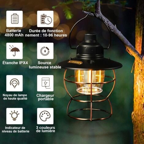 Illuminez vos aventures en plein air avec cette lampe de camping LED polyvalente de style vintage. La construction robuste et les éléments de conception bien pensés font de cette lanterne une solution d'éclairage fiable pour toutes vos activités de plein air. Le contrôle de la luminosité réglable vous permet de régler avec précision le niveau d'éclairage d'une lueur douce à une lumière brillante, tout en conservant la durée de vie de la batterie lorsque la pleine puissance n'est pas nécessaire. About this item [RETRO DESIGN]:La lampe de camping adopte un design unique de colonne romaine. Le design de style rétro et la combinaison de couleurs classiques le font passer d'un produit d'éclairage ordinaire à une collection d'artefacts précieux, ajoutant une touche classique à tout espace intérieur.Le style classique le rend plus unique avec le sens esthétique, l'éclairage... Lámpara De Camping Vintage Linterna Retro Tipo C Recargable 3 ANGGREK... Lampe Sur Batterie Lampe De Camping Led Solaire À Manivelle - Lampe De Camping À Dynamo Lampe Camping Rechargeable Avec trois réglages de température de couleur distincts, cette lanterne s'adapte parfaitement à vos besoins, que vous lisiez, cuisiniez ou créez un éclairage d'ambiance pour votre camping. Lanterne D'Extérieur Vintage À Énergie Solaire Sans Fil Lampe De Caractéristiques du design : lampe de camping LED de style vintage avec construction pliable pour un rangement et un transport faciles pendant les aventures en plein air Cette lampe de camping combine l'esthétique classique avec la technologie LED moderne, ce qui en fait un compagnon indispensable pour les voyages en camping, les réunions en plein air ou comme source de lumière d'urgence. Source d'alimentation : la batterie de grande capacité assure une durée de fonctionnement prolongée pour un éclairage fiable tout au long de votre voyage en camping