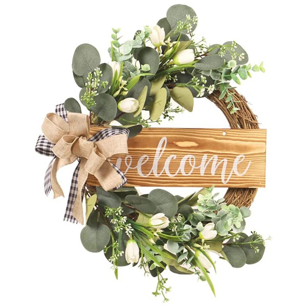 Description : Nom : couronne décorative. Description : Nom : couronne décorative. Matériaux : tissu plastique rotin bois. Couleur : conforme à l'image. Taille SUPERBE FAUSSE COURONNE de feuilles d'eucalyptus pour la décoration de mariage - EUR 17,96.À VENDRE! 296333219767 Vous pouvez mettre diverses décorations sur la couronne. Diamètre de la base : petit diamètre de la base 23 cm, diamètre de la base moyen 33 cm. Matériaux : tissu + plastique + rotin + bois. Taille : S 35 cm/M 45 cm. Les couronnes parfaites accueillent vos invités dans votre maison. Couleur : conforme à l'image. Elle peut également être utilisée comme guirlande de base à faire soi-même. Couronne De Feuilles Artificielles, Couronne De Porte Artificielle Accueillez vos invités avec cette magnifique couronne de feuilles d'eucalyptus, une pièce de décoration incontournable pour toute maison. Mesurant 46 cm de... Déco de printemps : la couronne végétale ajoute une touche nature