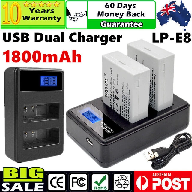 Nous offrons également une garantie de sécurité ultra longue de 24 mois. DSTE LC-E8 Batterie USB Dual Quick Chargeur Compatible pour LP-E8,EOS 550D,600D,650D,700D,Kiss X4,Kiss X5,Kiss X6i,X7i,Rebel T2i,T3i,T4i,T5i... DSTE Replacement Battery LP-E8 + Dual USB Charger with LCD 100% compatible avec la batterie et le chargeur d'origine Canon Eos 700d DSTE LP-E8 Chargeurs De Batteries Compatible Pour Canon EOS 550D 600D Canon Eos 2000d Mit 8.4V 1A Ausgang kann es 2 Batterien gleichzeitig aufladen. Sicherheit: Ausgestattet mit Mehrfachschutzsystem schützen Sie Ihre wertvollen Geräte immer vor Überladung und Kurzschluss. Wir bieten auch eine 24-monatige Ultra-Long-Sicherheitsgarantie Liste inclus: - 1x Dual USB Chargeur Détails du produit: -Chargeur Dimension: 11., 59x7., 01x1., 9cm /58g -Input: USB 5V 2., 1A -Output voltage/Current: 8., 4V/700mAh(one Batterie)、8., 4V/500mAh(two Batterie) -Le voyant LED devient vert lorsque le chargeur est à 90% ou plus. Fonctionne Pour:EOS 550D EOS 600D EOS 650D EOS 700D EOS Kiss X4 EOS Kiss X5 EOS Kiss X6i EOS Kiss X7i EOS Rebel T2i EOS Rebel T3i EOS Rebel T4i EOS Rebel T5i , Avec une sortie 8., 4V 1A, il peut charger 2 batteries en même temps.
