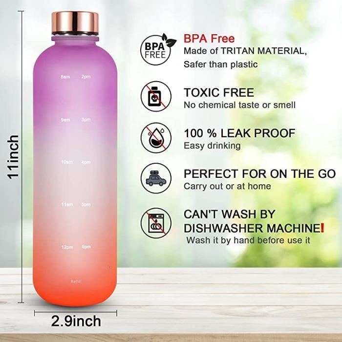 Bouteille d'eau de motivation Focuz avec le temps – Restez hydraté et motivé ! Le matériau sans BPA L'échelle de temps motivante sert de rappel visuel des moments importants pour boire tout au long de la journée. BOZ Elite | Bouteille d'Eau Isotherme, Gourde Sport Motivation Baseball (650 ml) - Deux verseurs avec Fonction de pulvérisation rafraîchissante, Durable, Anti-fuite, Sans BPA (Gourde Baseball Les fuites sont donc impossibles, même avec des boissons gazeuses. Gourdes De Camping Et Randonnée Gourde Sport 1L, Étanche Et Réutilisable, Gourde, Bouteille D'eau 1 Litre Avec Marqueur De Temps Et Filtre, Bouteille Pour Adulte, L'école, Cyclisme, Voyage, Camping, Fitness, Yoga, Bureau, Gym Gourde Humoristique FOCUZ Gourde de motivation 1 L avec marquage du temps de motivation, gourde 1 l, 1 litre - étanche, sans BPA, passe au lave-vaisselle, bouteille d'eau gazeuse adaptée au sport, aux loisirs, au bureau. Cela signifie que vous pouvez facilement atteindre votre objectif d'hydratation. L'échelle de temps de motivation sert de rappel visuel des événements importants heures de consommation tout au long de la journée. Description du produit L' chelle de temps motivante sert de rappel visuel des moments importants de boire tout au long de la journ e. Ainsi, vous pouvez facilement atteindre votre objectif d'hydratation. Le joint en silicone solide garantit la meilleure tanch it . Une fuite est donc une chose impossible, m me avec des boissons gazeuses. L'impression de la bouteille reste claire et clairement...