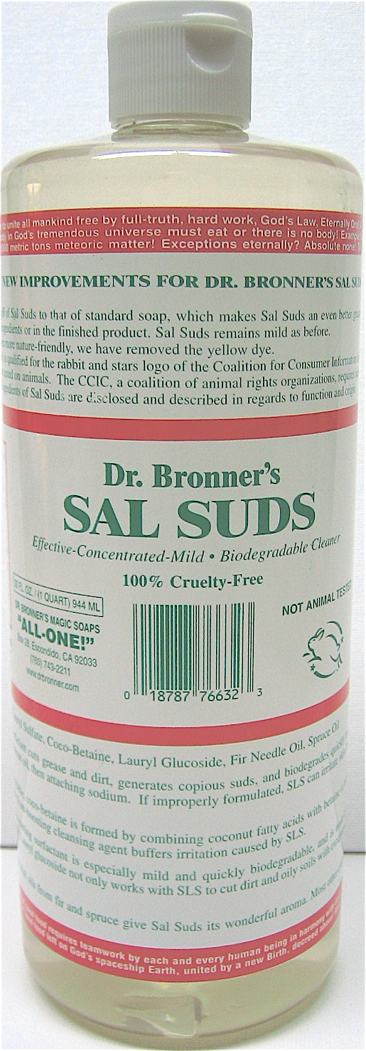 Dr Bronner s sal Sud solution 940 ml bouteilles (2 x) – biodégradables, emballés dans 100% recyc lebaren bouteilles, non testé sur les animaux. It also comes in 100% post-consumer recycled plastic bottles. For two years, I have been using Dr. Bronner's Castile soap in Almond scent, available at Walmart, and now I am converted to Sal Suds, its more concentrated, tougher cousin. Dr. Bronner's is a brand I trust, having used it happily for a long time in my home without issue – égalité efficace dans de l'eau dure ou douce, rincez, boissons chaudes ou froides Dr Bronner's Savon Dr. Bronner S Sal Sud Solution 940 Ml Bouteilles (2 X Dr Bronners Égalité efficace dans de l'eau dure ou douce, rincez, boissons chaudes ou froides Dr. Bronner S Sal Sud Solution 940 ml Bouteilles (2 x) : : EpicerieDr Bronner s sal Sud solution 940 ml bouteilles (2 x) - biodégradables, emballés dans 100% recyc lebaren bouteilles, non testé sur les animaux. Nettoyant - l'un des plus vendus tout dans des États-Unis - Nettoie de linge, planchers, salles de bains, bureaux, murs, vaisselle, voitures, fruits & légumes, doux... Homepage Sal Suds - Dr. Bronner's France L'un des plus vendus nettoyant dans des États-Unis Nettoyant – l'un des plus vendus tout dans des États-Unis – Nettoie de linge, planchers, salles de bains, bureaux, murs, vaisselle, voitures, fruits & légumes, doux et agréablement à votre peau – sal Sud solution est une solution formulée sur des supports non seifenbasis et comme nettoyant multi usages.