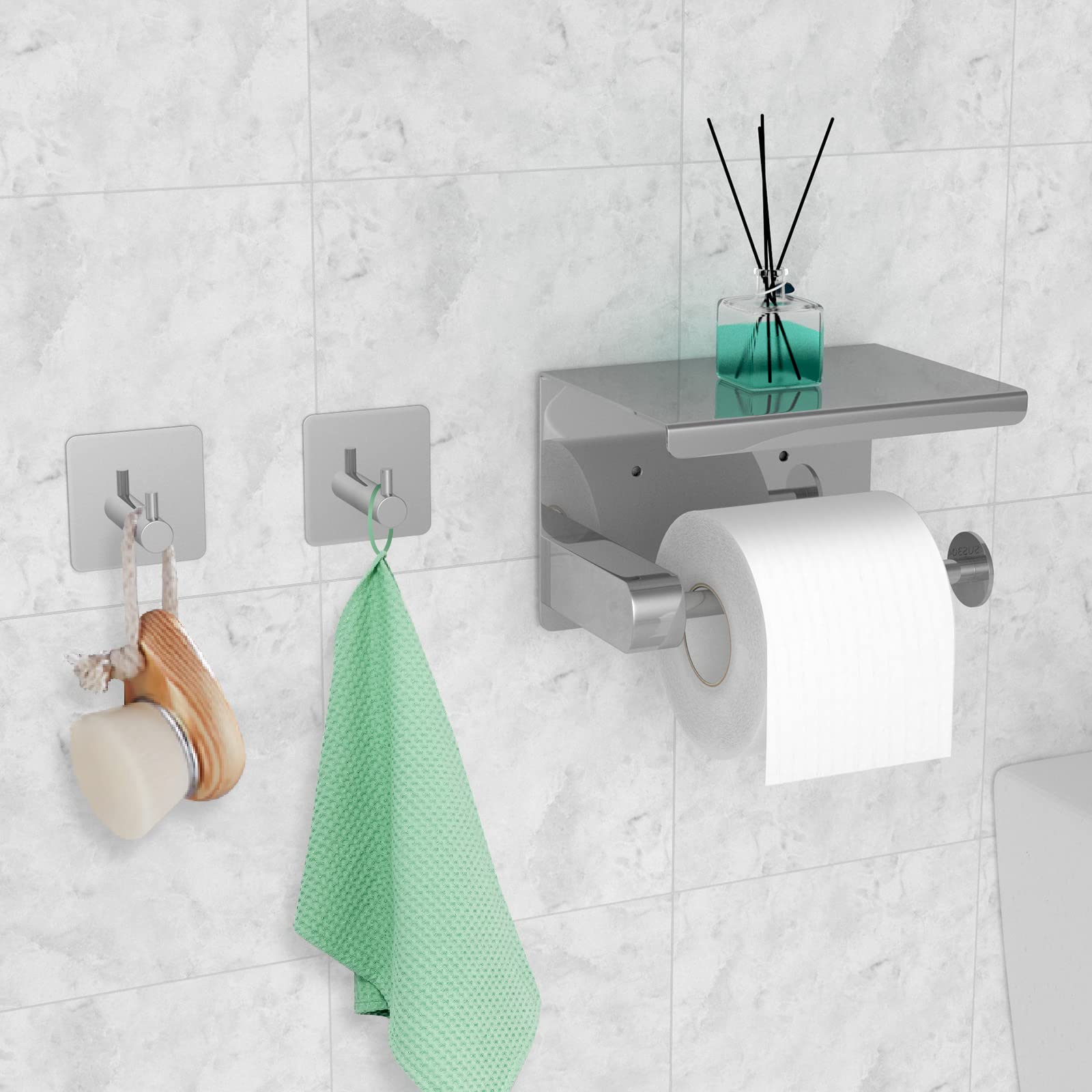 AIDILI Porte-rouleau de papier toilette sans perçage Installation autocollante Patin adhésif breveté monobloc, pare-balles, peut être monté horizontalement ou verticalement, montage dans n'importe quelle position souhaitée, pas de perçage nécessaire. Conseils d'installation : Nettoyez la surface de la paroi cible avant l'installation. Le dispositif antidérapant à l'extrémité de la barre facilite le retrait du papier toilette et le rouleau de papier reste dans sa position d'origine. Distributeur Papier Toilette On And Off Porte Papier Toilette Sans Tirez et changez facilement les roulettes. Conseils de démoulage : Chauffez la surface adhésive avec un sèche-cheveux. Robuste et Durable]Le porte-rouleau de papier toilette est fabriqué en acier inoxydable de qualité supérieure, qui est imperméable et antirouille, a une bonne capacité de charge et une bonne adhérence, et ne tombe pas et ne se déforme pas facilement[Installation Facile]Pas de perçage et pas besoin d'endommager le mur, il suffit de décoller le film adhésif et de le coller sur ... Qualité fiable : le porte-rouleau de papier toilette sans... Surface brossée, lisse et sans bavures. Matériau : Porte-papier toilette sans perçage en acier inoxydable SUS304 de haute qualité, imperméable et antirouille, durable. Il doit être une surface lisse comme le carrelage, le verre, le métal, etc. Installation rapide : Pas de perçage nécessaire, il suffit de retirer le film de protection autocollant à l'arrière du porte-papier toilette et de le coller sur une surface lisse. POLI À LA MAIN ET ASSEMBLÉ - Pour garantir la meilleure qualité et la meilleure finition de votre porte-papier hygiénique, vous donnant une sensation de luxe à chaque fois que vous utilisez le produit. FIXÉ EN UNE MINUTE - Le ruban adhésif est déjà fixé au produit et il ne vous reste plus qu'à coller le porte-papier hygiénique au mur Porte Papier Toilette Sans Perçage Porte-rouleau Pour Papier Toilette Porte Papier Toilette Auto Adhésif Ne convient pas pour le papier peint ou les murs en stuc.
