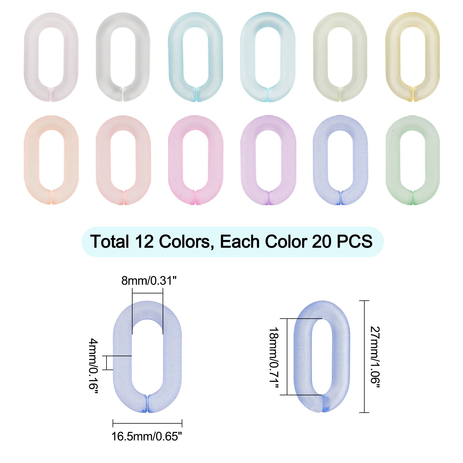Spécification: Quantité:240 pièces Matériel: Acrylique Taille: Environ 0., 93 pouce (23., 5 mm) de long, 0., 65 pouce (16., 5 mm) de large, 0., 18 pouce (4., 5 mm) d'épaisseur, diamètre intérieur : 0., 26x0., 51 pouce (6., 5x13 mm), 30 pcs / couleur, 8 couleurs, 240 pcs. Anneaux de liaison colorés : les anneaux de liaison en acrylique sont transparents et ont un beau brillant., ., Il y a des couleurs de bleu, verte, jaune, pourpre et plus, parfait pour ajouter un peu de style avant-gardiste à votre look, adapté à de nombreuses occasions. Note gentille: Veuillez autoriser une petite erreur sur la taille en raison de la mesure manuelle. 120 anneau de liaison en acier inoxydable 304 de style 4 en gros pour PH PandaHall Lot de 100 anneaux de liaison en acrylique, 5 couleurs, connecteurs rapides pour boucles d'oreilles, colliers, bijoux, chaînes de lunettes, loisirs... Gancetti Per Braccialetti Elastici PandaHall 800 Pièces Anneaux De Liaison Acrylique - Chaînes Colorées Pour Téléphone, Sac à Main Et Lunettes - 8 Couleurs Vibrantes Anneaux Lien Bonbon Ces anneaux de liaison ouverts sont faciles à connecter et à séparer. Large application : vous pouvez assortir ces anneaux de liaison colorés comme vous le souhaitez et créer des chaînes de sac délicates et uniques. Matériau fiable : ces anneaux de liaison sont fabriqués en acrylique. La couleur peut exister une légère différence en raison de différents affichages d'écran. La texture transparente les rend plus à la mode.