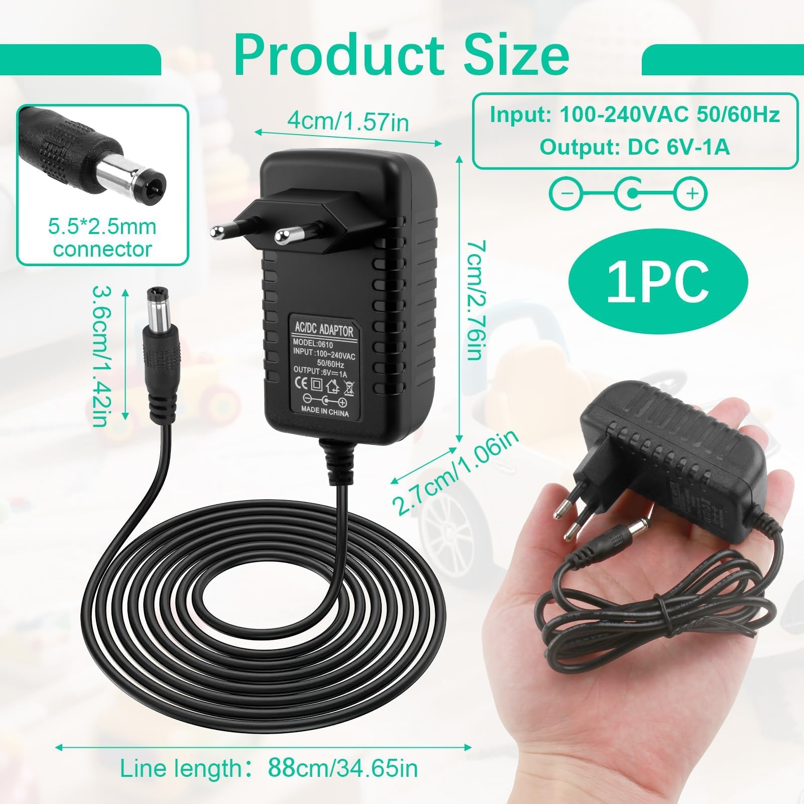 Conçu pour les batteries plomb-acide 6 V, il assure une charge sûre et efficace. Batterie 6 V pour enfant véhicule électrique sur-siège voiture jouet moto SUV ATV chargeur de rechangeENTRÉE : 100-240V AC, 50-60Hz, SORTIE : 6V 500mA2,1 mm x 5,5 mm Centre Positive Barrel Plug. Veuillez vérifier avant l'achat s'il correspond à l'interface de l'appareil Prises pour recharger les véhicules électriques et explorez des millions de vecteurs professionnels sur Freepik. Indicateur de charge ED pour une utilisation facile L'indicateur LED indique l'état de charge : rouge = charge verte = complètement chargée Remarque : ce chargeur ne convient que pour les batteries plomb-acide 6 V. Léger et compact, facile à transporter et à ranger. Tension d'entrée universelle et sécurité fiable - Prend en charge une tension d'entrée de 100 à 240 V - Idéal pour une utilisation dans le monde entier. Prise CC compatible pour une connexion facile. Il n'est pas compatible avec les batteries au lithium, NiMH ou LiFePO4., Veuillez vérifier les spécifications de votre batterie avant l'achat La protection contre les courts-circuits, la surcharge et la surchauffe garantissent une utilisation sûre. La finition de qualité supérieure assure une longue durée de vie et des performances fiables. Chargeur Feber 6v 1ah Chargeur Batterie Enfant 12v Chargeur 6V 1A Pour Voiture électrique Enfant Chargeur Voiture Chargeur 6v 1ah Enfant KALANKA-Lot de 24 chargeurs pour véhicules électriques pour enfants, bloc d'alimentation pour batteries plomb-acide 24 V dans les voitures jouets, motos... Chargeur 6 V pour Enfants Moto Voiture électrique, Bloc d