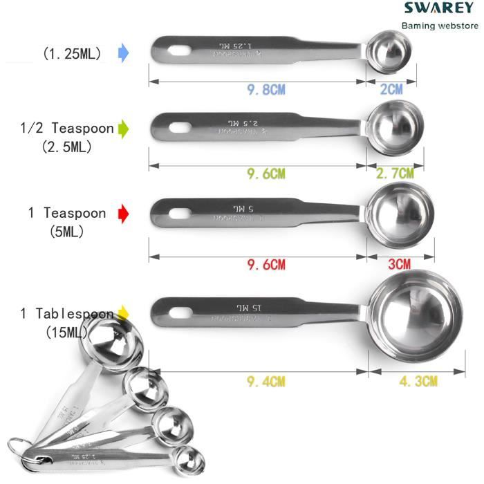 en outre, il est livré avec un anneau en métal pour pratique de recueillir et accrocher ces cuillères. Avec facile à utiliser et à nettoyer, il est vraiment une merveilleuse cuisine cuisson cuillères pour le choix. Matériau : acier inoxydable de qualité alimentaire . Cuillère à café en acier inoxydable à long manche - Cuillère doseuse DescriptionL'article est un ensemble de 4 PCs cuisine cuisson cuisson cuillères à mesurer en différentes tailles, qui incluent une 1 cuillère à soupe, 1 cuillère à café, 1/2 cuillère à café et une 1/4 de cuillère à café, et outils de mesure sont dans le processus de cuisson et la cuisine. - Outils de mesure dans le processus de cuisson la cuisson, et peuvent être utilisés pour mesurer le liquide les ingrédients secs tels que le thé, le café, la soupe, poudre à pâte, bicarbonate de soude, lait et quoi que ce soit en petite quantité. Caractéristiques: · Nombre de pièces: 4 pc/ensemble · Origine: CN (Origine) · Spécification: 17.9*4.5cm · Caractéristique: Multifonctionnel · Caractéristique... 4 pièces de cuillères à mesurer en différentes tailles dans un seul ensemble seront vendus ensemble., Couleur : principalement. - Design simple et pratique, facile à utiliser et à nettoyer. - cuillère taille (capacité) : y compris 1/4 cuillère à café (1., 25ml), 1/2 cuillère à café (2., 5ml), 1 cuillère à café (5., 0ml), 1 cuillère à soupe (15ml). Venez avec un anneau en métal pour pratique de recueillir et accrocher ces cuillères quand ils ne sont pas en cours d'utilisation. Vendues à l’unité ou par lot de 5, 6 ou 10, les cuillères doseuses se déclinent en version réglables ou digitales. Les choix sont multiples au niveau des matières (inox, plastique ou bien d’autres) sur les pages du N° 1 du e-commerce en France. Offrez-vous aussi des couverts de choix à prix réduit Cuillère Doseuse Pour Thé 1X(CUILLÈRE DOSEUSE À Café 1 CuillèRe à Soupe CuillèRe En Acier 4 Cuillères Mesures Acier Caractéristiques- 4 pièces de cuillères à mesurer en différentes tailles dans un seul ensemble seront vendus ensemble., - Couleur : principalement.