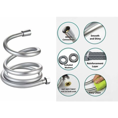 Le grand alésage fournit un débit d'eau optimal pour profiter d'une pression d'eau puissante pendant la douche. Avec une paroi en laiton massif plus épaisse, il comprend deux rondelles aux deux extrémités des connecteurs en laiton pour vous aider à l'installer facilement et s'adapter à n'importe quel système de douche. Qualité supérieure : le tuyau de douche en acier inoxydable est fabriqué en acier inoxydable 304 avec une surface antirouille et un tuyau intérieur non toxique avec une haute résistance à la pression. Couleur A Grand entonnoir à large alésage en acier inoxydable 304 La structure de verrouillage à haute ténacité vous garantit une expérience de douche sûre et agréable à tout moment. Matériau du corps : Acier inoxydable Tuyau de douche extra long chromé de 150 cm Les finitions chromées résistent à la corrosion et au ternissement, le placage a passé le test AASS 24 heures... Matériau du tube intérieur : EPDM Matériau du connecteur : Laiton massif Ronvie Flexible de douche en acier inoxydable Le tuyau de douche en acier inoxydable 304 offre une protection de sécurité pendant que vous êtes dans une douche agréable. Performance optimale : ce tuyau de douche chromé offre une bonne structure d'étanchéité et une bonne flexibilité, une douceur modérée, facile à plier, évite l'éclatement et les fuites d'eau, maintient l'utilisation quotidienne. Tuyau de douche flexible à double boucle plaqué acier inoxydable de 1,5 m. Les finitions chromées résistent à la corrosion et au ternissement, et la chambre à air est fabriquée en matériau EPDM de première qualité pour une résistance aux hautes pressions et aux températures élevées.1 flexible de douche chromé extra long de 0,5 m, flexible et ne se plie pas. Le flexible de douche... Pommeau Douche Douille Ampoule Ronvie Tuyau De Douche De 1,5 M Avec Grand Al Sage En Acier Q 873068 Tuyau Douche Un outil professionnel pour sanitaires Pendant que vous prenez une douche agréable, le tuyau de douche commence à fuir, vous vous sentez frustré et vous plaignez pendant toute la journée, c'est la raison pour laquelle nous avons développé Ronvie, nous sommes prêts à fournir une protection totale pour votre maison.