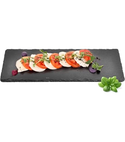 Dimensions : environ 30 x 20 cm - Épaisseur : environ 1,3 cm - Poids par plaque : environ 0,8 kg - Couleur : anthracite La couleur de l'ardoise crée un merveilleux contraste avec les plats lumineux et les éléments décoratifs, ce qui rend l'ensemble de la présentation encore plus impressionnante Le poids d'environ 0,8 kg par plaque assure stabilité et sensation de qualité, tandis que les plaques sont assez légères pour être transportées confortablement. Bord de rupture authentique et détails : Chaque plateau en ardoise de cet ensemble est fini avec un bord cassé authentique qui met en valeur le charme rustique et la beauté naturelle du matériau. Ardoise naturelle avec bords authentiques, 4 pieds en caoutchouc mousse Design anthracite élégant : La couleur anthracite naturelle de l'ardoise confère aux plaques une élégance intemporelle qui s'intègre harmonieusement dans n'importe quelle décoration de table. Plateau Ardoise – Joli Plateau De Fromage, De Charcuterie, De Gâteau Ou Autre – Ardoise... Avec une surface texturée naturelle et un bord cassé authentique, les plaques offrent une base idéale pour présenter vos plats avec style. Ce design discret mais élégant met en valeur la beauté des plats présentés sur celui-ci sans se mettre en valeur. Équipement pratique pour un maintien sûr : Pour garantir que les ardoises sont stables et sûres sur n'importe quelle surface, elles sont équipées de pieds en caoutchouc mousse antidérapants. Genware SLTN-2020 Plato de pizarra 20 x 20 cm acabado rústico Cette caractéristique rend les plaques particulièrement pratiques pour une utilisation dans la restauration ou à la maison, où elles sont non seulement visuellement convaincantes, mais aussi fonctionnelles et sûres Plateau Ardoise En Solde Pommette Endurance élégant Plateau De Service En Ardoise La Maîtrise Impressionn Plateau Coeur Ce bord de rupture donne non seulement un aspect unique, mais donne également aux panneaux une texture distinctive. Ces pieds protègent les surfaces de table délicates des rayures et empêchent les plateaux de glisser même lorsqu'ils sont complètement chargés. Cet équilibre entre taille et poids les rend parfaits pour une utilisation lors de dîners, buffets ou occasions spéciales Avec pieds en caoutchouc mousse pour une ambiance agréable sur toutes les tables. Convient pour un usage domestique et la gastronomie, contenu de la livraison Dimensions généreuses et poids approprié : Avec une taille d'environ 30 x 20 cm par plaque, ces plateaux en ardoise offrent suffisamment d'espace pour organiser une variété de plats de manière attrayante.