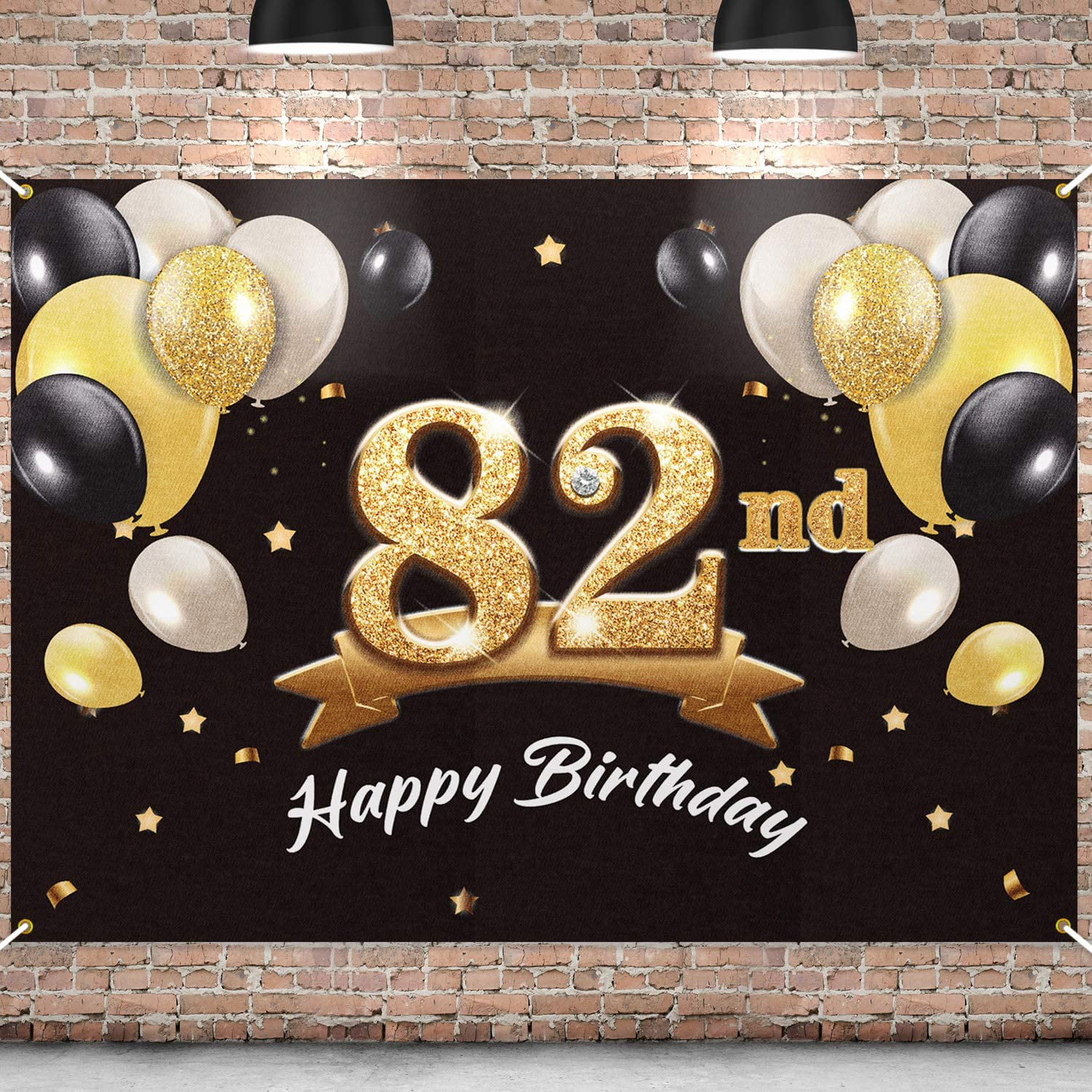 82nd Birthday Card For Men - Black & Gold Glitter Balloons
