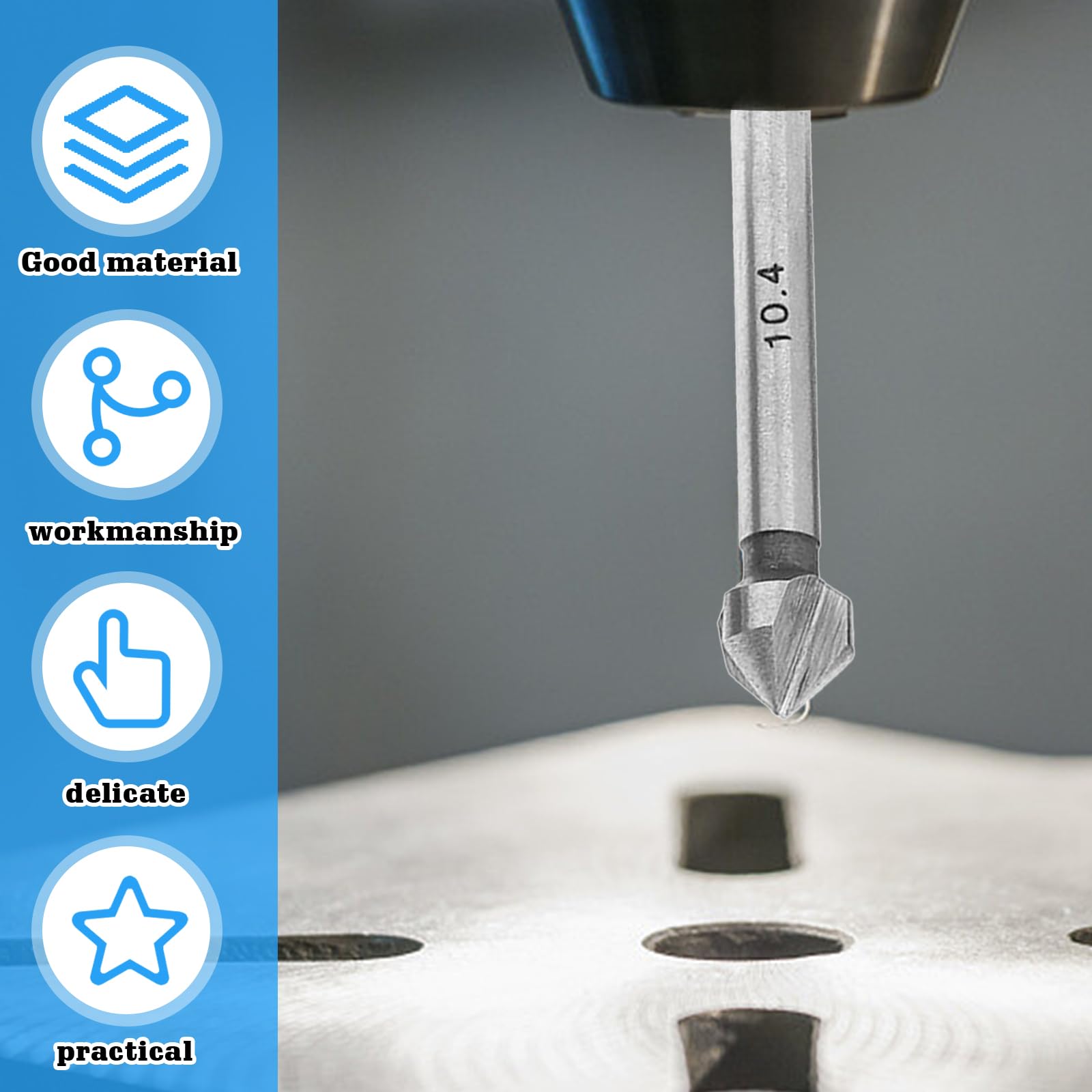 【Contenu de la livraison】Ce kit comprend 1 foret de centrage automatique en laiton et 6 pièces de trous fraisés en acier rapide de 6,3 mm, 8,3 mm, 10,4 mm, 12,4 mm, 16,5 mm, 20,5 mm Paramètres du produit : Lot de 6 forets à fraiser HSS 6,3 mm, 8,3 mm, 10,4 mm, 12,4 mm, 16,5 mm, 20,5 mm et 1 foret de centrage automatique en laiton. Pack de 5 forets HSS pour métal, à bois ou à béton (3 à 8 mm) - x2... L'angle de 90 degrés de la pointe permet un nettoyage plus précis et un perçage précis, la saleté tombe lors du perçage et évite le colmatage. Paramètres du produit : Marque : NIYATA Matériau : HSS 4241, laiton Couleur : argenté, doré. Large application : le kit de fraise en bois est adapté pour le traitement de matériaux métalliques et non métalliques tels que l'acier au carbone, les plaques d'acier, le fer, l'aluminium, les matériaux isolants, le PVC, les plaques de bois, les plastiques, etc. Le pointeau parfait peut marquer les creux sur la pièce, la positionner à l'avance et empêcher le foret de glisser. Fraise Conique Set 6 Fraises Coniques 90° | Pour Métal, Bois Haute dureté, bonne résistance à l'usure et durabilité. Usinage précis : le kit de fraises coniques est trempé et poli et dispose de 3 bords tranchants qui peuvent bien casser et enlever les bavures. La couleur réelle est soumise au produit réel reçu., 2., Les mesures étant prises à la main, la taille peut varier légèrement. Jeu De 6 Fraises à 90 ° Jeu De Fraises HSS, Revêtements En Titane 6,3-20,5 Mm Fraise Avec 1 Pack De Poinon De Perage Central Automatique En Laiton (jeu De Fraises Coniques 1 Poinon Assortiment de fraises coniques HSS Bague verte, HSCO 90°, DIN 335 C... Matériau de qualité supérieure : la fraise utilise de l'acier rapide HSS 4241, revêtement en titane. Angle : 90 degrés Taille des forets : diamètre 6,3/8,3/10,4/12,4/16,5/20,5 mm Quantité : 7 pièces.