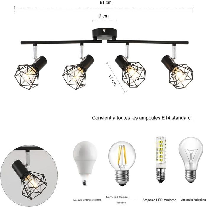 CELI-1A Aufbauspot Alu gebürstet schwenkbar 230V 6W dimmbar mit Éclairage d'accentuation : non. Il n'est pas nécessaire d'installer un variateur supplémentaire – intensité variable avec n'importe quel interrupteur normal grâce à la technologie LED fourstep. Classe d'efficacité énergétique : A+. Présentation du produit Lot de 4 spots de plafond CELI-1A à LED plat – 4 lampes de montage en aluminium brossé avec LED fourSTEP 5 W blanc neutre à A1438 Quatre spots plats avec surface brossée et fonction pivot avec module LED fourStep à intensité variable sans variateur. L'intensité lumineuse du spot en saillie peut être réglée sur 4 niveaux avec n'importe quel interrupteur... Données CELI-1 en aluminium brossé Matériau : aluminium. Avec ce plafonnier encastré fourstep, vous avez la possibilité de régler l'intensité et ce, sans avoir à installer un variateur supplémentaire. Pas besoin de composants supplémentaires. 3 niveaux de variation possibles : Lumière à 100 %., Éteint la lumière., Lumière à 50 %., Éteint la lumière., Lumière à 20 %. L'intensité lumineuse des lampes peut être réglée sur 4 niveaux avec chaque interrupteur normal : 100 % > 50 % > 20 % > 0 %. Valeur de comparaison : environ Halogène 50 W Consommation pondérée : 5 kWh/1000 h. 4 spots plats à monter avec surface brossée et fonction pivot avec module LED fourStep à intensité variable sans variateur. Couleur : boîtier brossé/anneaux polis Tension : 230 V AC / 50 Hz., Puissance maximale : 30 W. Smol - Lot De 4 Spots Encastrables - Ultra-Plats, Orientables, En Noir Lumière concentrée : non. Flux lumineux total : 420 lm. La luminosité peut être réglée avec n'importe quel interrupteur ou bouton-poussoir. Rendu des couleurs (IRC) : 80Ra. Raccordement direct sur 230 V – pas de transformateur nécessaire – câble de raccordement intégré – Dimensions de la lampe spot : Ø 80 mm, hauteur 50 mm, orientable à 30°. En allumant et en éteignant l'interrupteur d'éclairage normal. Tension de fonctionnement/fréquence : 230 VAC/50/60 Hz., Puissance nominale : 5,0 W.