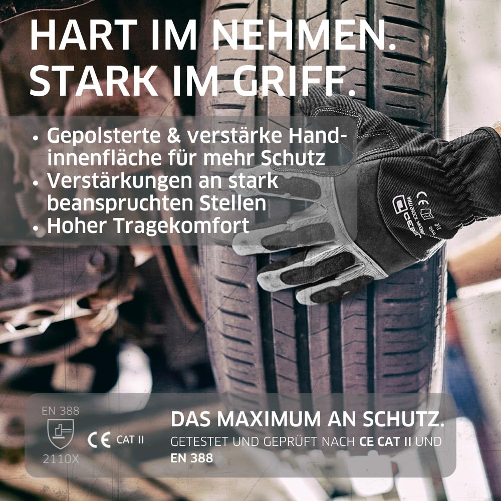 Sous-selle drapeau américain en tissu polaire à l'extérieur et pure... Nos agents de qualité et de conformité contrôlent les produits et les processus de produits sur place. Malgré de bonnes propriétés de protection, le Master Shock offre un haut niveau de confort. Facile à utiliser - Les manchettes Fast Fit facilitent l'enfilage et le port rapides Retirer le gant d'extérieur. Gant Cuir Travail Master Shock Gants De Travail Avec Rembourrage Et Renforts Gant De Travail Cuir Utilisateur : femmes, hommes Durabilité : Nous veillons au respect des lois nationales et des normes sociales internationales dans nos usines de production. Domaine d'utilisation : les gants de mécanicien haut de gamme Master Shock sont adaptés pour les travaux de montage, de voiture et de réparation. GEBOL - It's in your hands Les gants Master Shock font partie des gants Gebol de qualité supérieure pour les utilisateurs exigeants. Des partenariats à long terme avec les producteurs constituent la base d'une économie durable. Grand confort - Les paumes rembourrées assurent un excellent confort du gant de sécurité malgré des propriétés de protection élevées. Gants de travail Ge Master Performance · Commander et payer via · Livraison offerte par · 30 jours de réflexion et retour gratuit · Garantie légale via... Gebol Multi Flex Lady Gants de travail avec revêtement en nitrile et Ainsi, le Master Shock est le choix optimal comme gant d'atelier, gant de construction ou gant de technicien. Ainsi, le Master Shock est le choix optimal comme gant d'atelier, gant de construction ou gant de technicien. La bonne coupe de ces gants de protection contribue à un confort optimal. Matériel: Dos de la main : néoprène Paume : cuir synthétique. Facile à utiliser - Les manchettes Fast Fit facilitent l'enfilage et le port rapides Retirer le gant d'extérieur. Les paumes rembourrées et renforcées ainsi que des renforts supplémentaires aux zones sollicitées protègent les mains lors de tous les travaux lourds tels que les travaux de montage, de véhicules à moteur et de réparation.