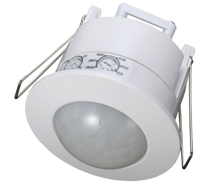 Détecteur de mouvement INFRAcontrol DeckUP 360°, détection infrarouge, angle de détection 360°, montage encastré, portée de détection jusqu'à 12m, 230VAC, 50Hz, 1 canal pour commuter la lumière, lampes à incandescence : 2000W lampes halogènes haute tension : 1000VA lampes fluorescentes : 500VA lampe à économie d'énergie : 360VA LED : 360W/VA, temps de poursuite ; 5 sec., - 12 min. Appareil à 3 fils pour charge ohmique et inductive , Ampoules à incandescence max. Détecteur de présence PIR Luxa blanc Interieur TheRonda P360-100 M UP WH | Détecteur De Présence 230 V | Montage Au Detecteur De Mouvement IP20, montage au plafond encastré, valeurs de réglage avec télécommande infrarouge (806601016) Portée de détection : 360 °, portée de détection : 16 m, hauteur de montage recommandée : 2 à 5 m · Temps jusqu'à 5 secondes. · IP20, installation haut/plafond... luminosité de réponse en continu 20-300Lux, télécommandable (télécommande IR en option), type de protection IP20, couleur : blanc Temps de réglage : 5 secondes., - 12 min. Portée de détection : 360 °, portée de détection : 16 m, hauteur de montage recommandée : 2,5 m Commandez dès maintenant votre Détecteur de présence passif infrarouge plafond Dali 3 canaux 360° + caches TheRonda P360-330 DALI UP WH Theben sur notre site internet !