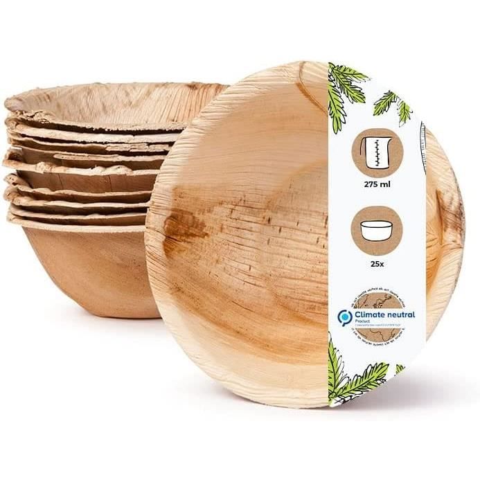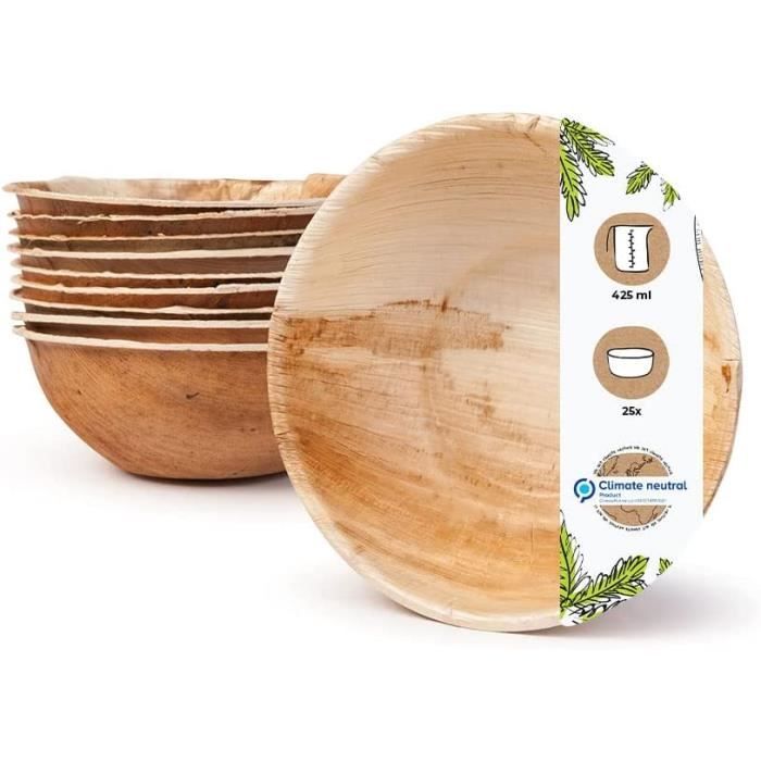 Engagement pour le climat et l’équité entièrement compostable selon la norme DIN13432 Sans additifs – le veinage du bois rend chaque assiette unique et naturellement décorative. Comment la vaisselle en feuilles de palmier est-elle fabriquée ? Les feuilles tombées sont triées, lavées, pressées et moulées. Nous veillons à des conditions de travail équitables, contrôlées selon des normes reconnues telles que BSCI, SEDEX ou SA8000., Recherche pour de nouveaux matériaux Sans plastique ni additifs chimiques, cette vaisselle est 100 % compostable – pour une table durable et un usage en toute conscience. Comme la vaisselle jetable est pressée à partir de la feuille entière du palmier arec, le grain naturel de la feuille est individuel pour chaque pièce. Cela... Une pièce 100 % naturelle Les avantages de notre vaisselle en feuille de palmier adaptée au contact alimentaire, étanche, rigide et résistante à la coupe La forêt tropicale est-elle déboisée pour la production ? Non. Nous investissons dans la recherche de nouveaux matériaux et procédés afin d’améliorer en permanence nos produits et de développer des solutions économes en ressources., Durabilitée Au cœur de notre démarche : la conviction qu’il vaut mieux utiliser des matières premières renouvelables que puiser dans des ressources limitées. Bol Soupe Palmware - Vaisselle Jetable Environnemental Du Papier Palmier I 50 Pièces Bols Ronds 275Ml 13 Bol Biodégradable Les assiettes et bols sont fabriqués à partir d’une feuille entière. Nous proposons un large choix de produits durables pour votre quotidien et votre maison. Convient aux plats chauds ou froids, idéale pour les grillades et buffets. 25/100/200 Plaque Feuille Palmier Jetable Ronde 25 Cm Faite 100% Compostable Éco-friendly Él Chaque pièce est taillée dans une feuille d’arec entière.