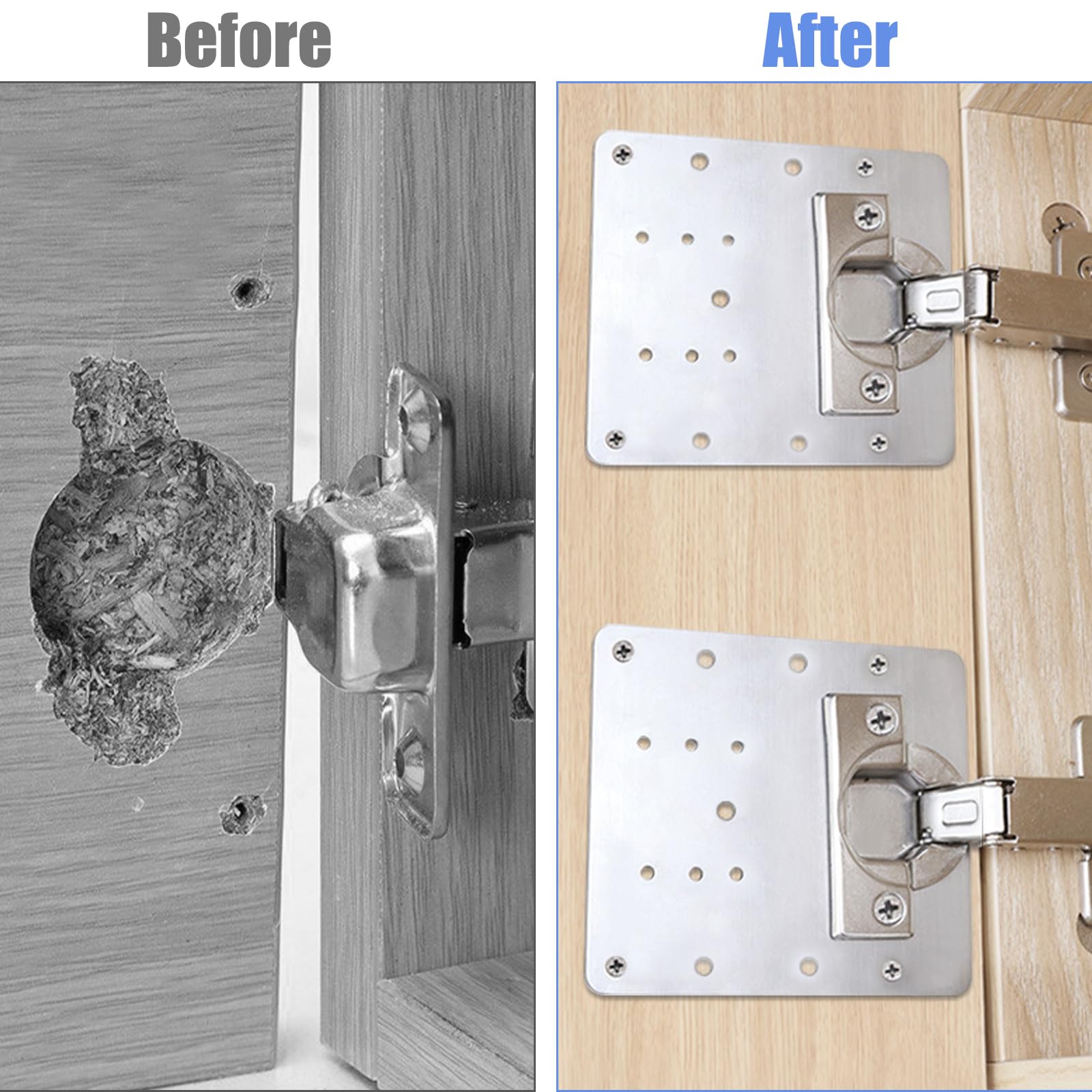 Matériau : Acier inoxydable., Couleur : Argenté., Dimensions : 9 x 9 cm. Installation sur la porte de l'armoire Contenu du produit : le colis est livré avec 4 plaques de réparation de charnière, 36 vis, une combinaison complète et vous pouvez facilement fixer le support avec une perceuse électrique ou un tournevis. Lot De 10 Plaques De Réparation Pour Portes D'armoire, Charnières En Acier Inoxydable - Kit De Réparation Pour Meubles En Bois, Cuisine, Porte D' Armoire, Meubles, Charnières D'armoire (avec Vis Description du produit Description du produit : Recommandé par les charpentiers professionnels : la plaque de fixation de charnière est fabriquée en acier inoxydable de haute qualité et polie à plusieurs reprises pour ébavurer la rend plus durable, élégante et ne blesse pas les mains. Lot de 10 plaques de réparation de charnière d'armoire avec vis personnalisées, supports de réparation de charnière de porte de placard de cuisine en acier... C'est très important ! Informations sur la taille : veuillez vous référer à l'image 2 détails de taille avant de passer une commande d'achat, la distance des trous des vis des charnières des charnières des charnières est d'environ 48 mm ou 45 mm, la distance des trous des vis des panneaux latéraux de l'armoire est d'environ 32 mm, la longueur latérale est d'environ 90 x 90 mm. Ces plaques métalliques avec trous peuvent fixer les panneaux de porte à charnière ensemble, de sorte que vous n'avez pas besoin de remplacer de nouveaux panneaux de porte, la solution la plus abordable et pratique pour résoudre ces problèmes. Service haut de gamme : nous sommes convaincus que ce kit de réparation de charnière de porte vous aidera beaucoup. KIT DE RÉPARATION charnière de porte d'armoire avec plaque en acier inoxydable - EUR 6,54.À VENDRE! 364703929837 Produit comprenant :4 plaques de réparation 16... Plaque De Porte Personnalisée Lot De 4 Plaques De Réparation De Charnières D'armoire En Plaque Réparation Charnière Acier Fixez la plaque de réparation